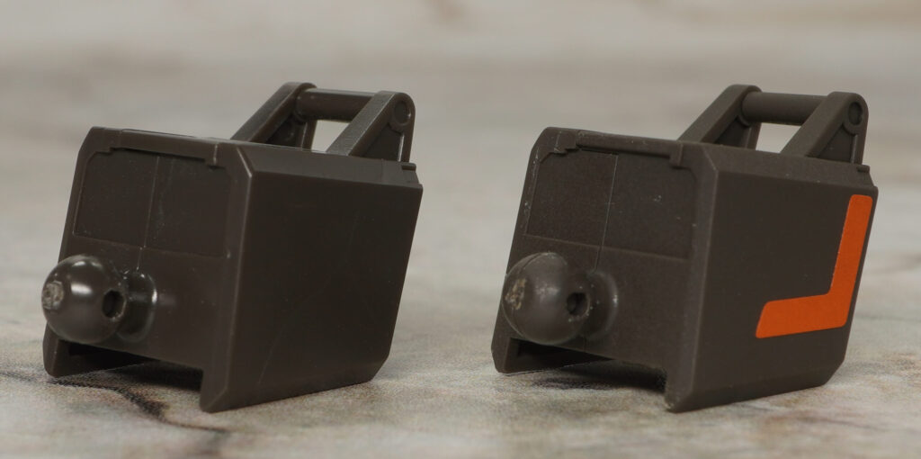 全身のオレンジラインはマーキングシールで再現でき、胸などの▽部分はホイルシールで色分け。