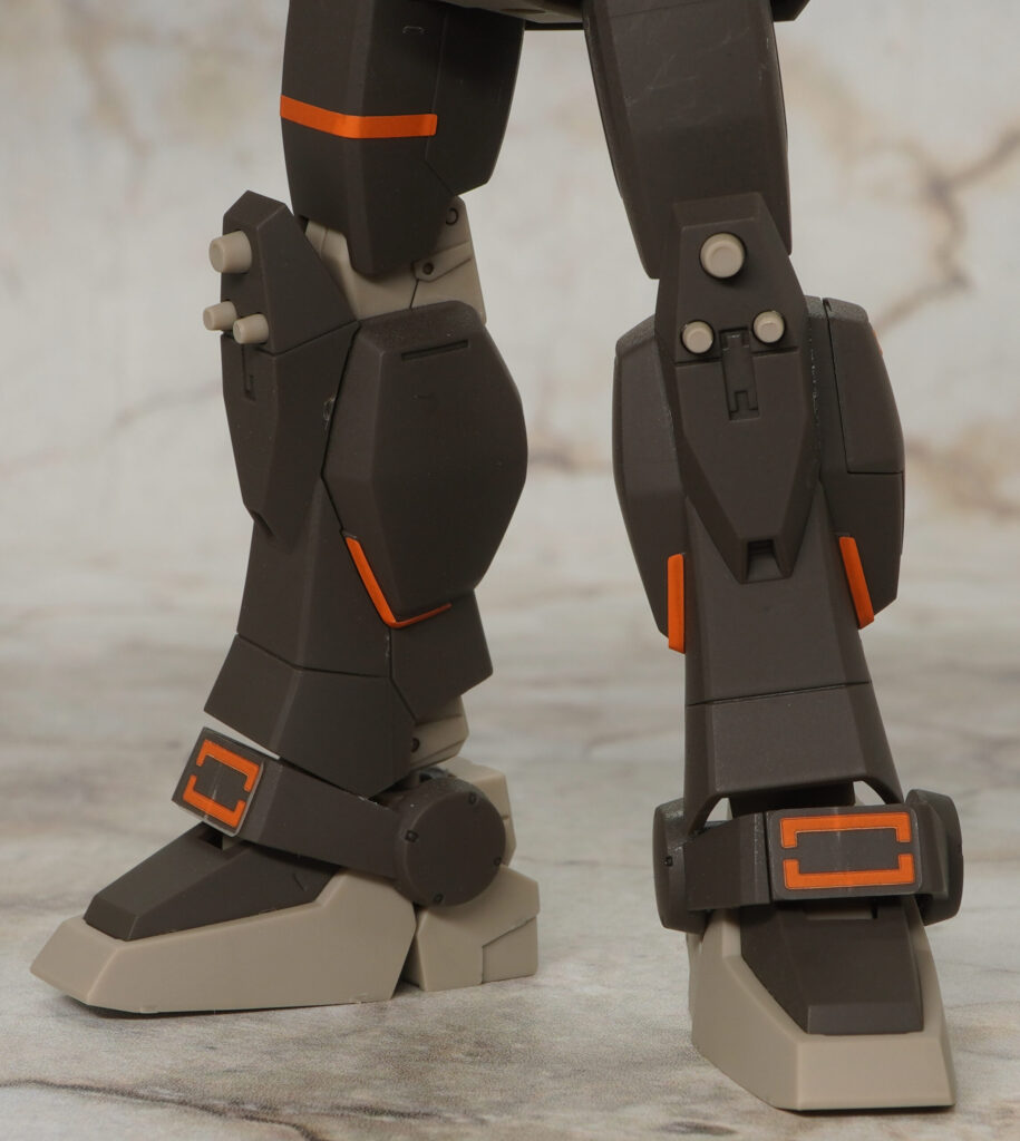 脚部もヒザのスパイクなど別パーツで造形されており、ふくらはぎ側面にはビーム・サーベルを収納。