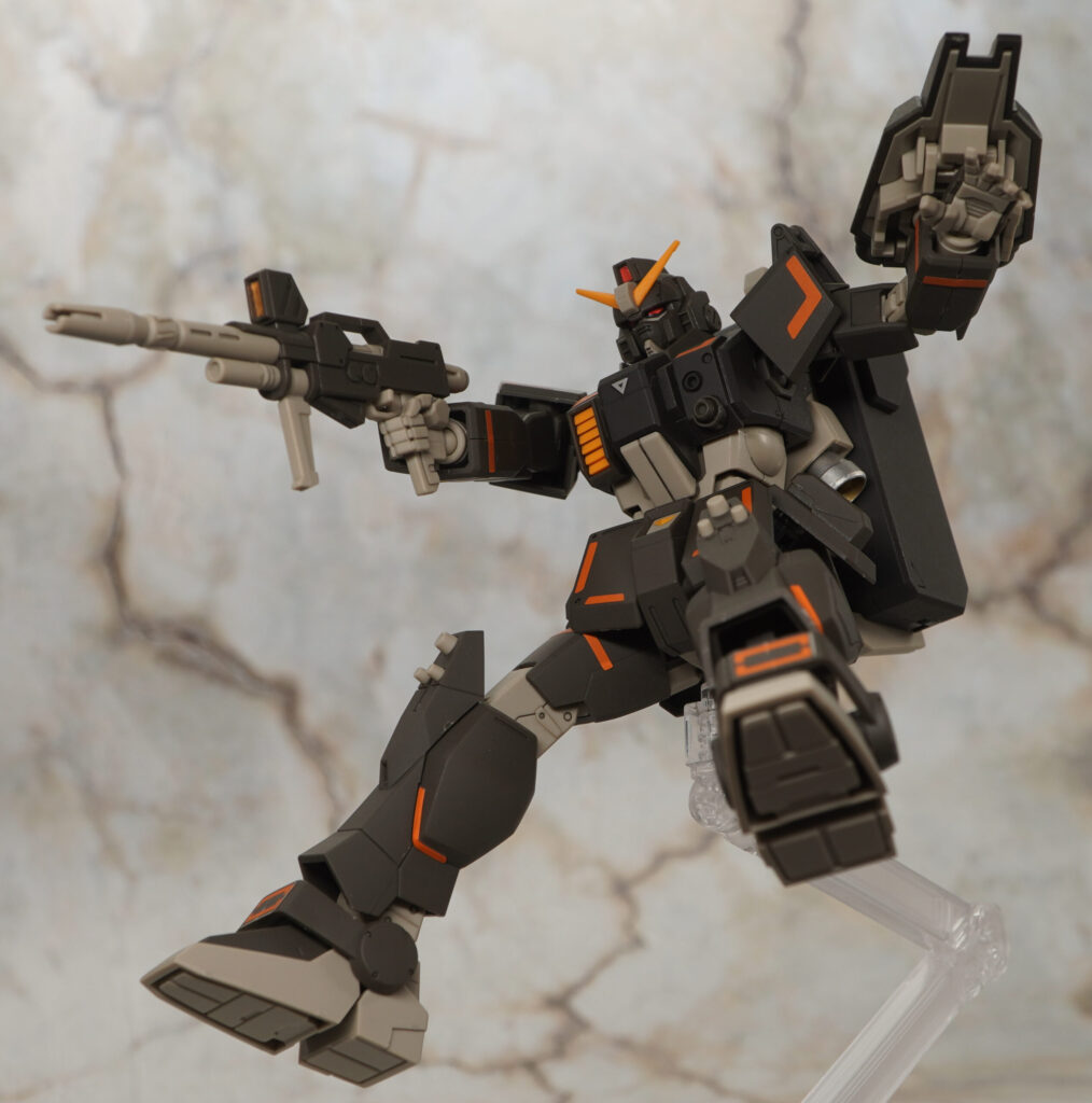 ほぼHGUC陸戦型ガンダムそのままなので全体的に可動範囲が広く、ビーム・ライフルやマシンガン、キャノン砲などの豊富な武装も付属しているぞ!