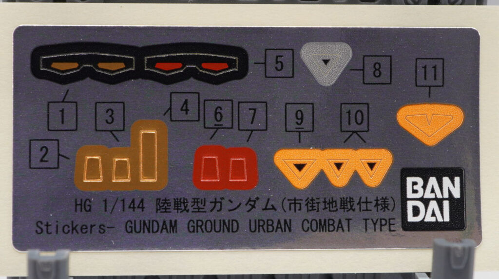 パッケージとシール。センサー類や▽などを色分けするホイルシールと、全身のオレンジラインを再現できるマーキングシールが付属。