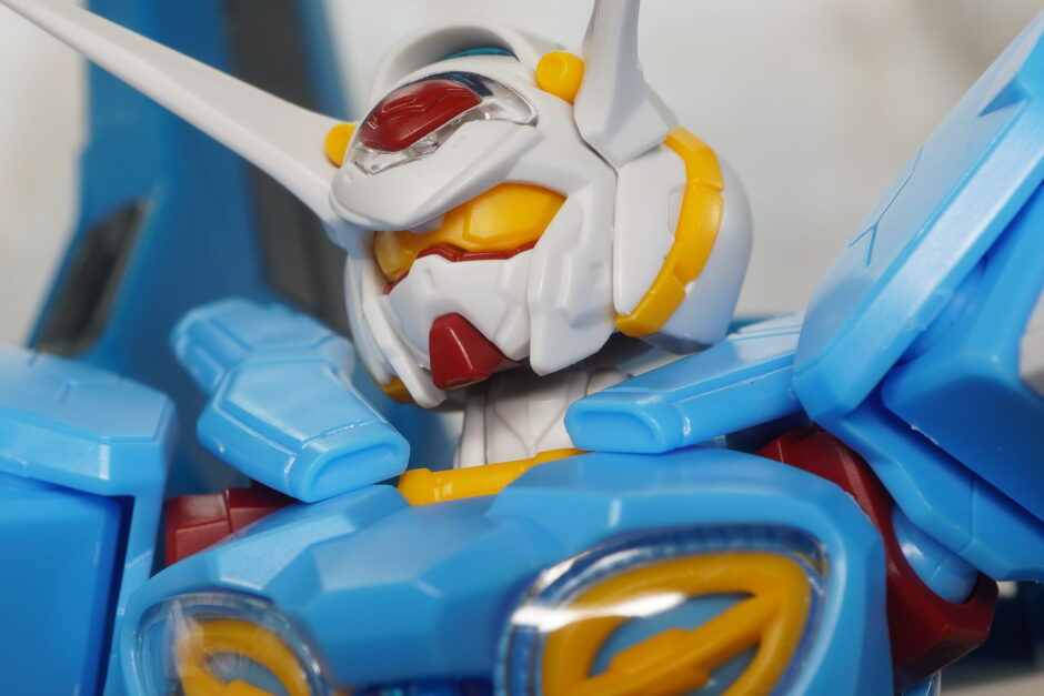 頭部は通常版のパーツを使わず丸ごと改修されており、バルカンや側面の黄色い部分などがパーツ分割で色分けされ、丸顔な造形に。