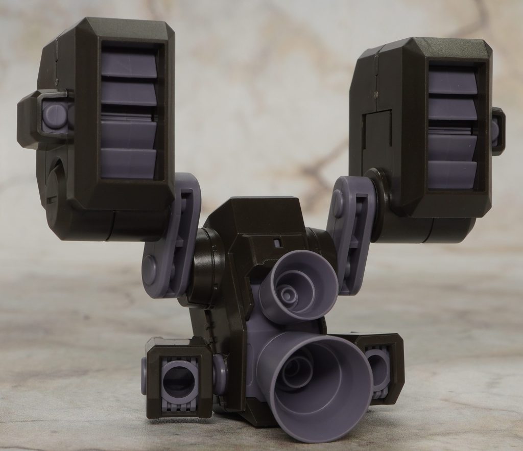 バックパックにはミサイルポッドが2基備わっていますが、ハッチは開閉せず。