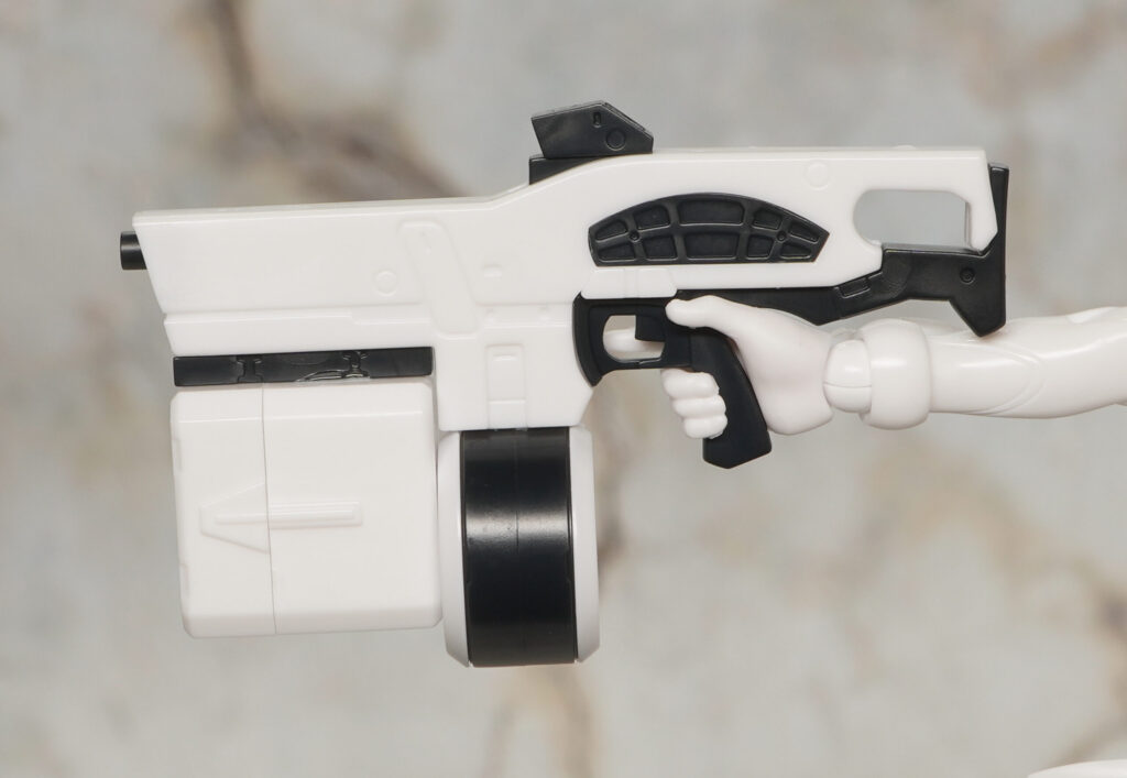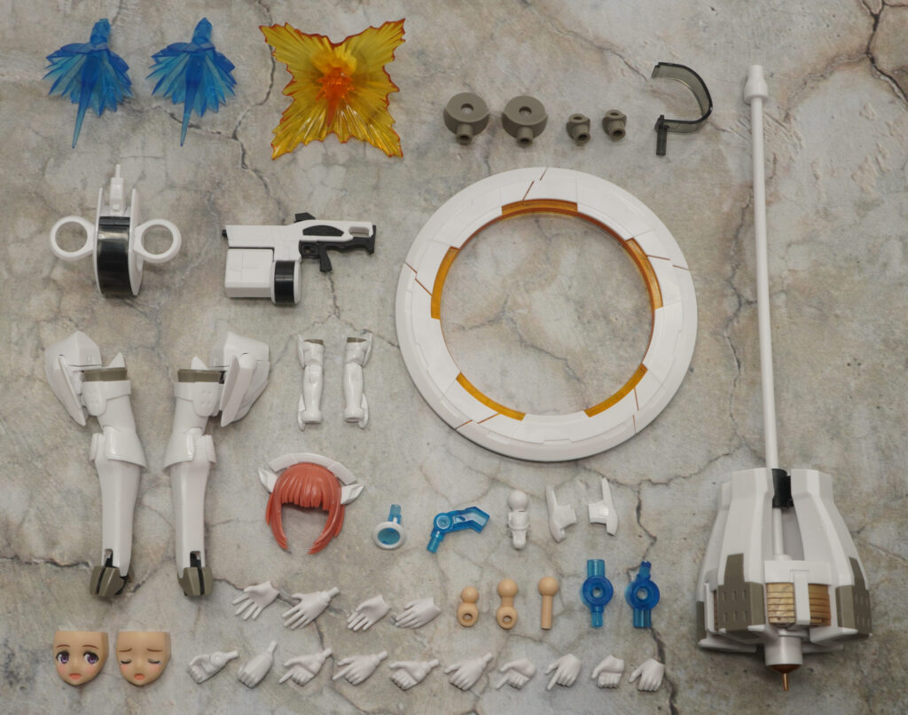 付属品は表情パーツ×3種、ハンドパーツ×8種、ギア一式、ショットギア、クロスギア、SPギア、隊長ドローン、各種首関節、手脚リングジョイント一式、マズルフラッシュエフェクト、スラスターエフェクト×2、展示ベースです。