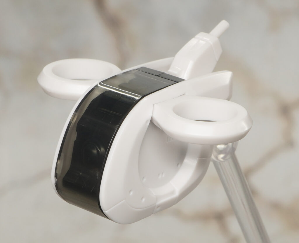 クロスギアは先端がパーツの塊でそれなりに重たいですが、プラ製の持ち手を使えばしっかり保持できるぞ!