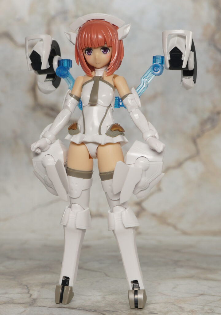 素体モード時は袖の部分がラッパ型になってるので、ハンドパーツ交換時に関節が中に残ってしまって取り出し難いのがちょっと厄介。