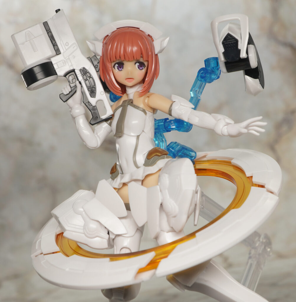 こちらが完成した【メガミデバイス】相河 愛花の素体モードです。「アリス・ギア・アイギス」に登場する”お花大好き純粋少女”がキャッチフレーズな、ヒーラーアクトレスの愛花をメガミデバイス仕様でプラモ化した物。