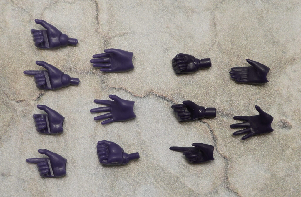 ハンドパーツは素体モード用が7種類と武装モード用が5種類付属。