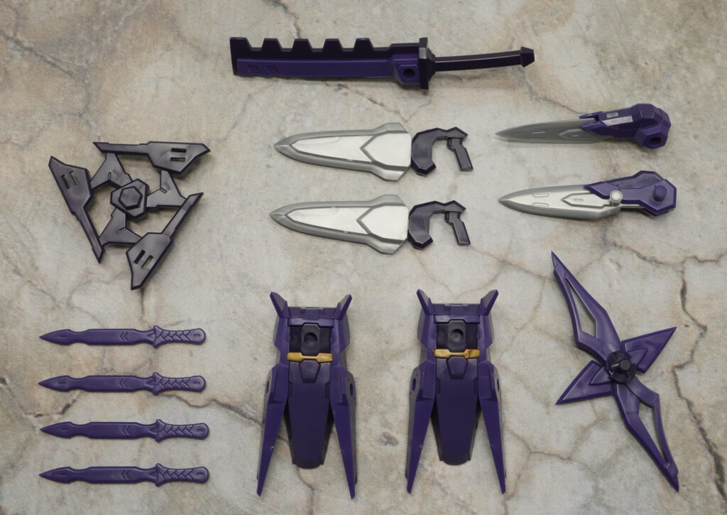 忍者刀やデカい手裏剣、クナイなど旧忍者の豊富な武装が付属。