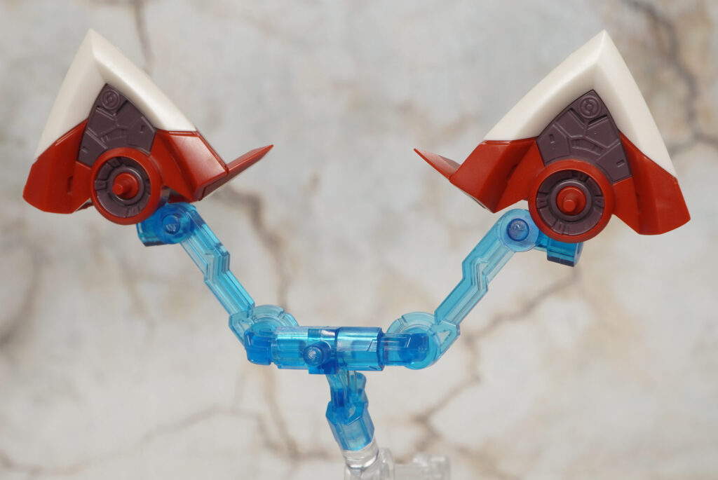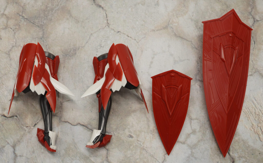 胴体や腰周りに多くの塗装済パーツが使われており、ホイルシールを使ってシールドを色分けする点はノーマル版と同じです。