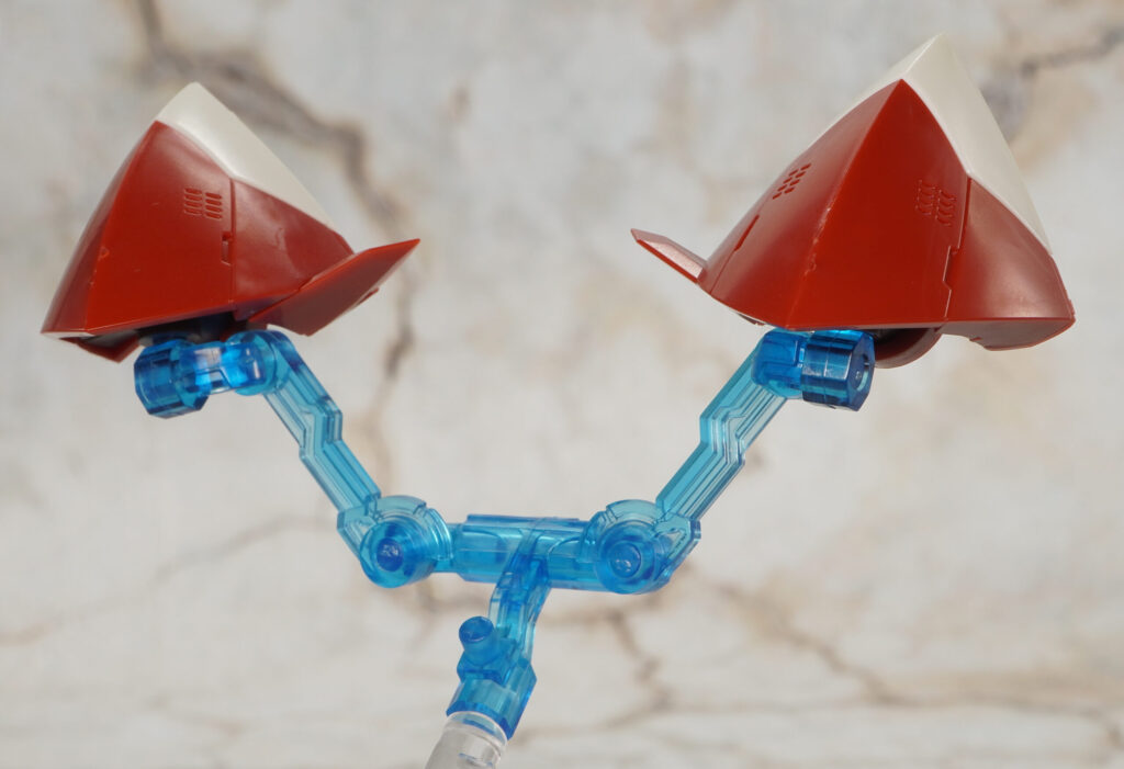 背部トップスギアやボトムスギアはクリアブルーのハンガーパーツを使って浮遊を再現。