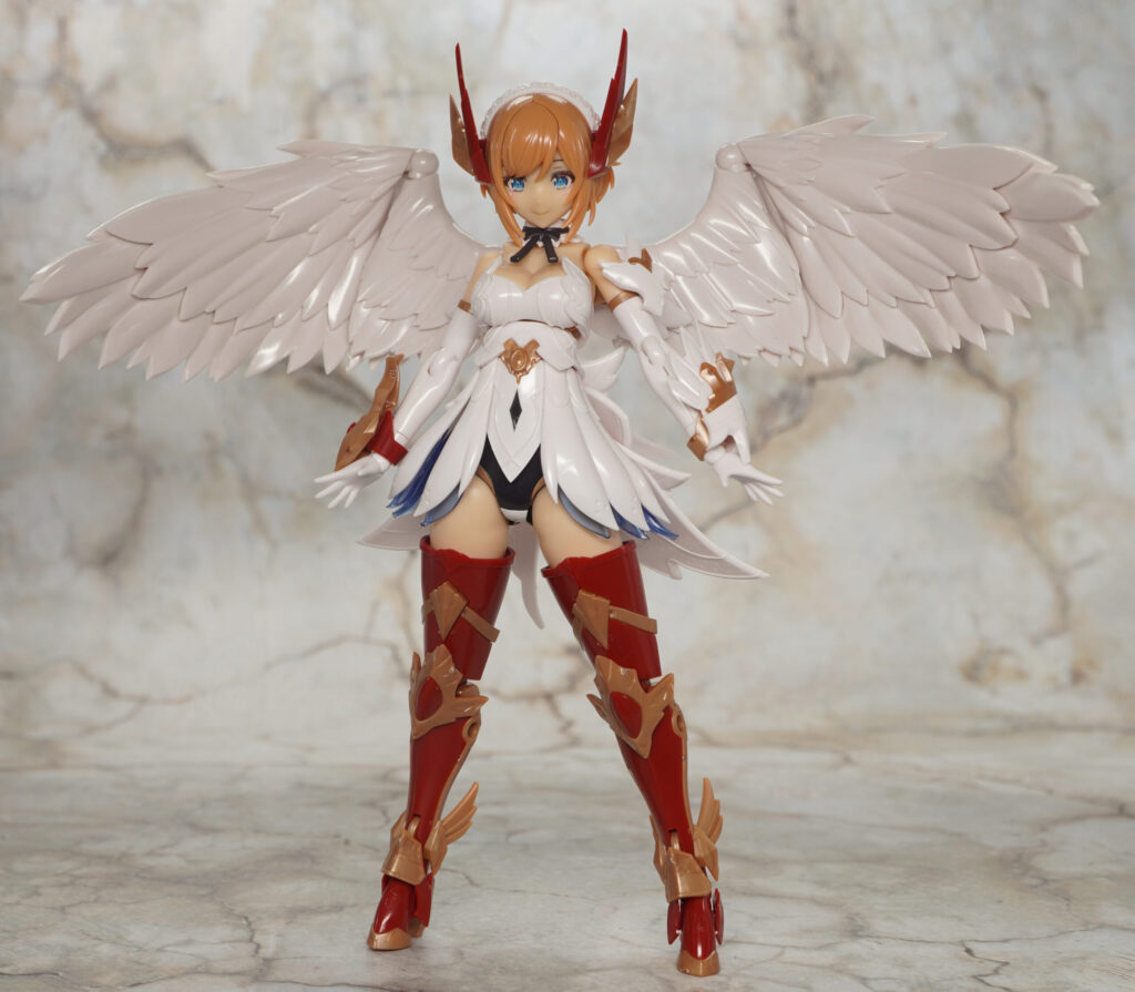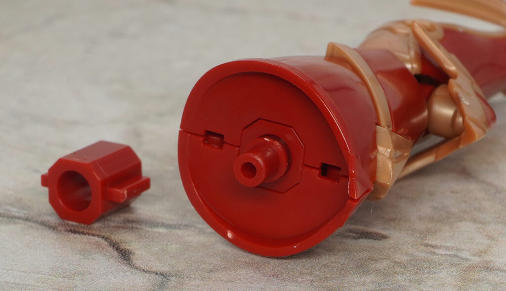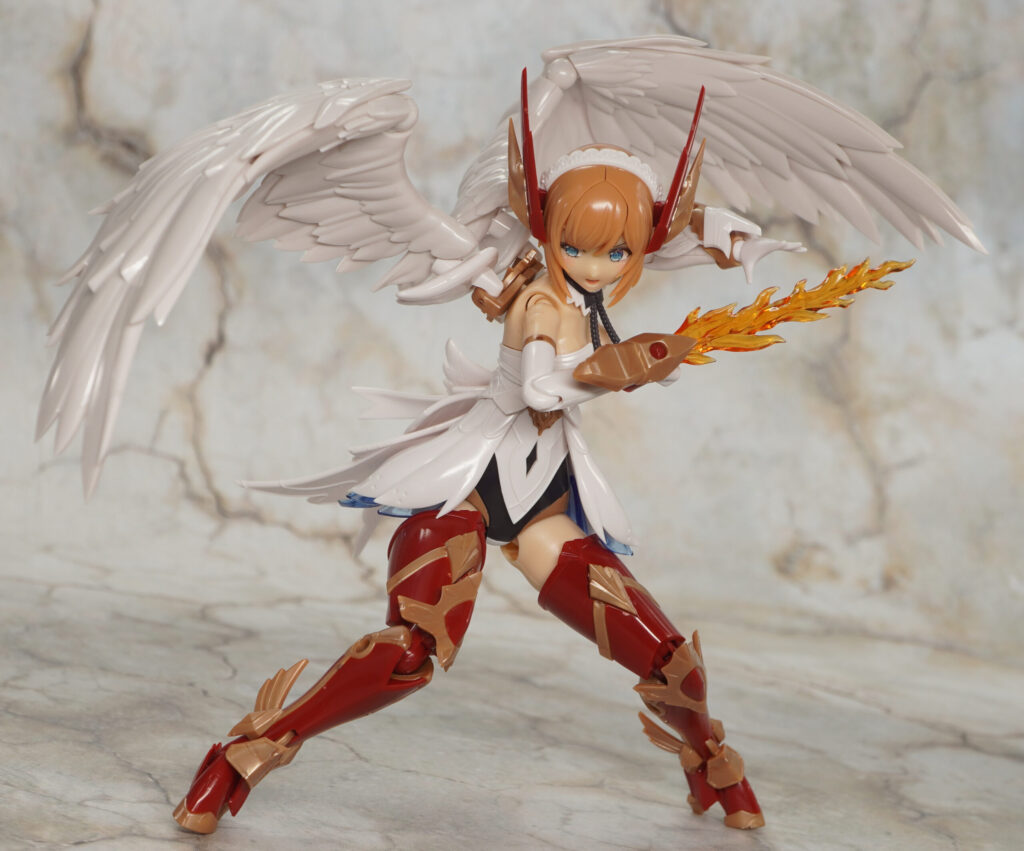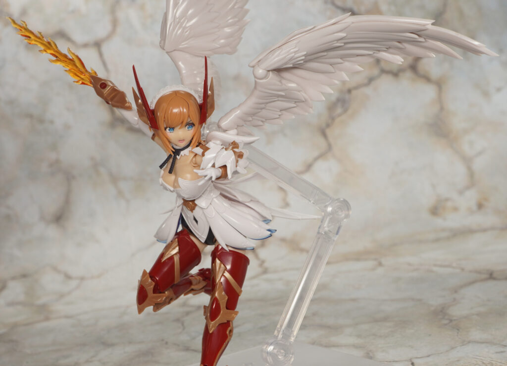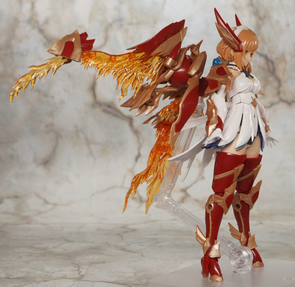 右手首にはフレイムブレードを装着でき、頭部の羽根飾りパーツはPOM製の汎用3mm軸ジョイントを取り付けることもできます。