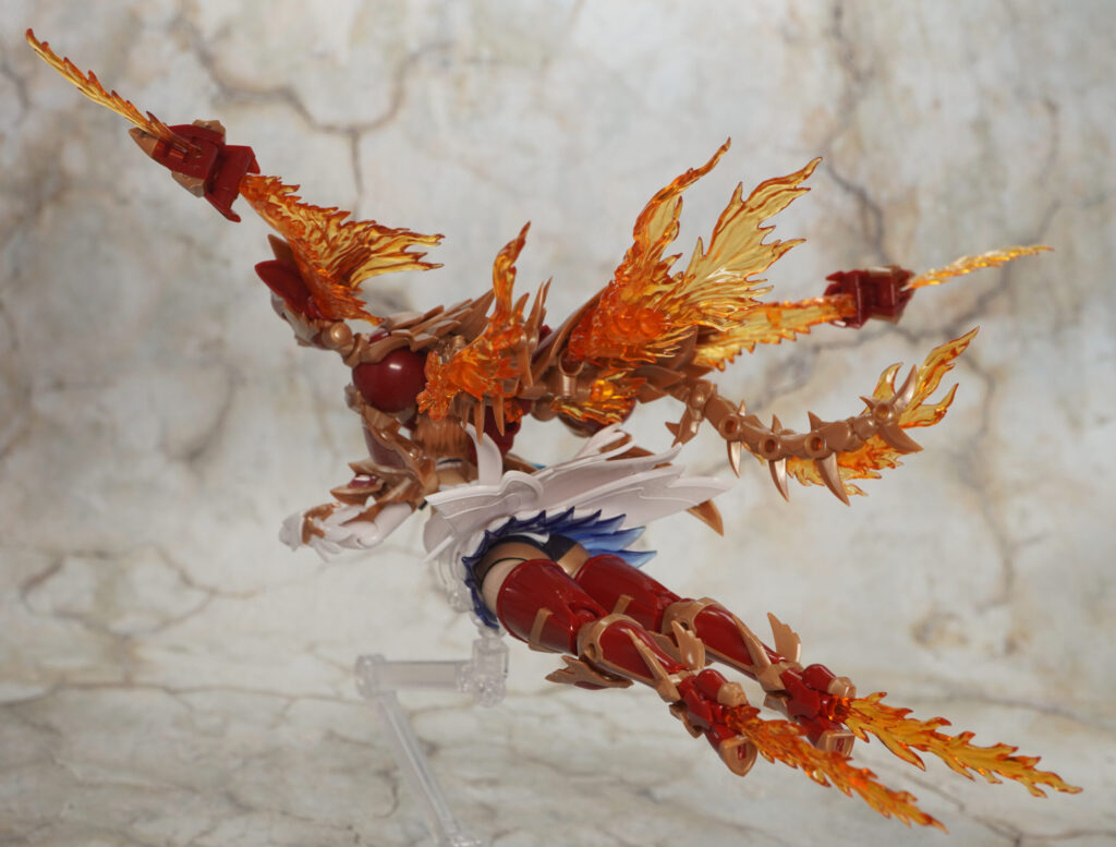 翼の部分は軸接続なので脚に取り付けて必殺フレイムキックなんも再現できるぞ🔥🔥
