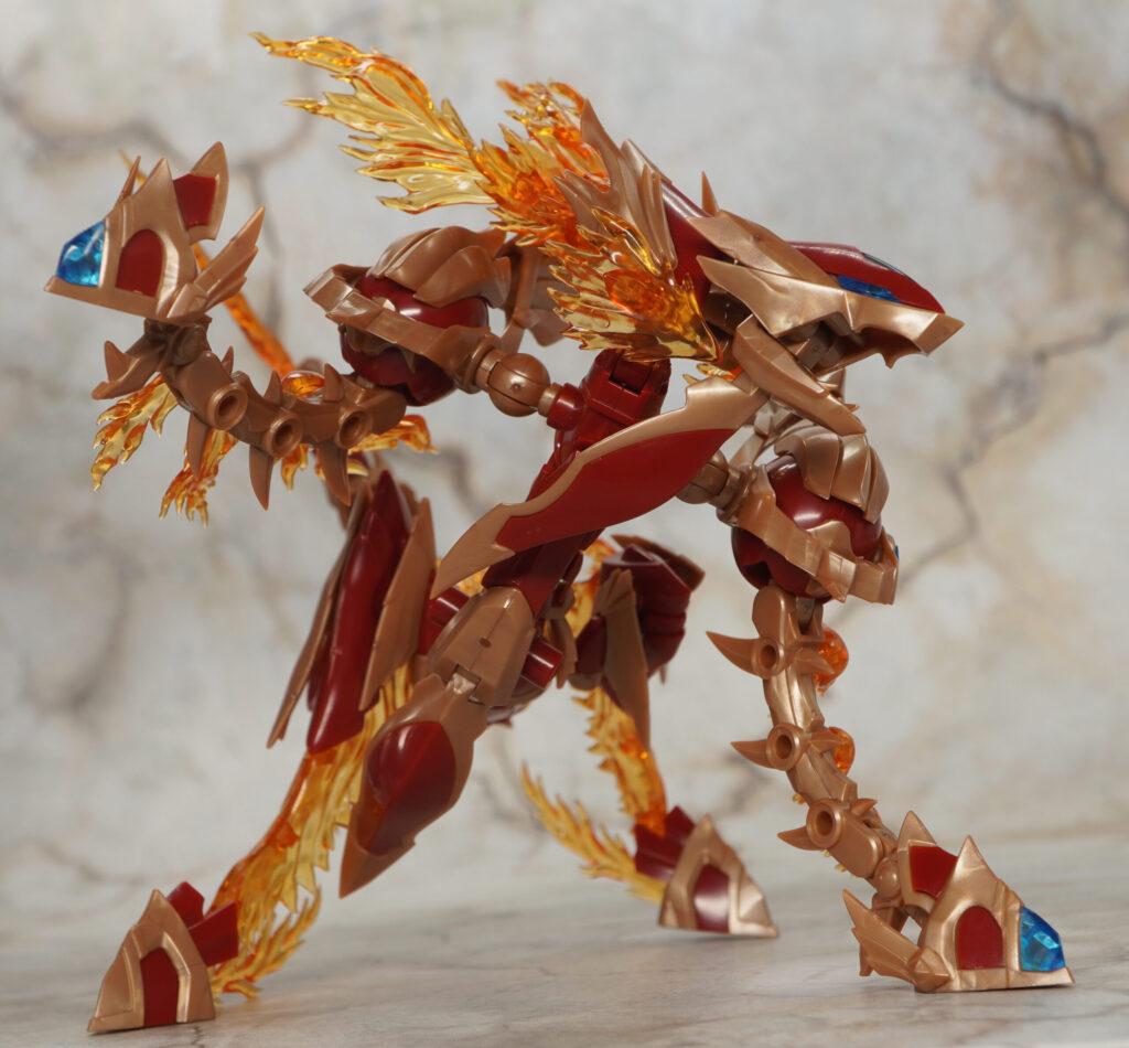 炎エフェクトでできた翼の部分は根元が軸可動し、先端はヴォルカリオン時に足首になります。