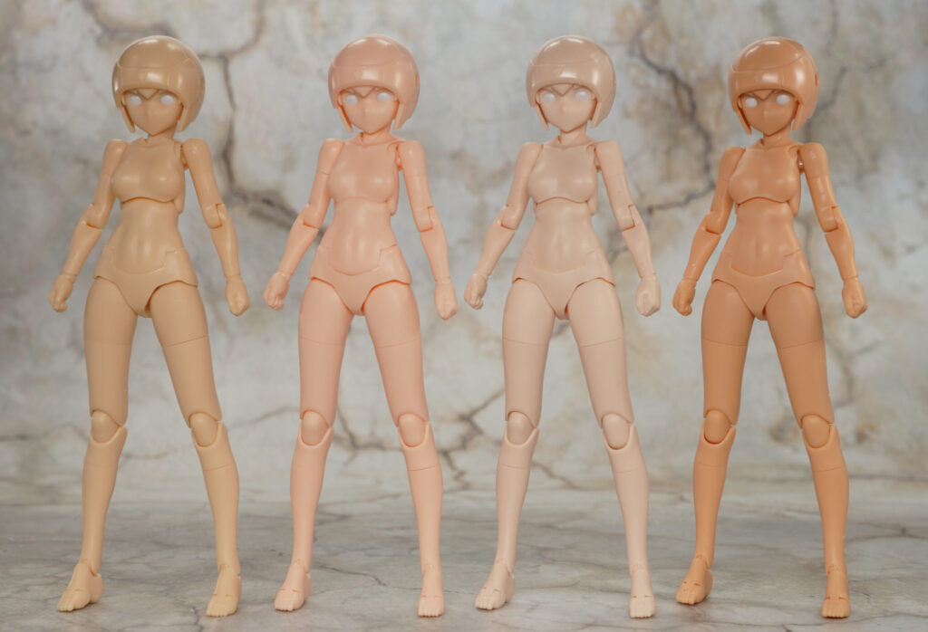 こちらが完成した【メガミデバイス】B1R-M シャーシキット スキンカラーDです。既存キャラと互換を持たせつつ可動やプロポーション、組み立て易さをアップデートさせたというメガミ素体。