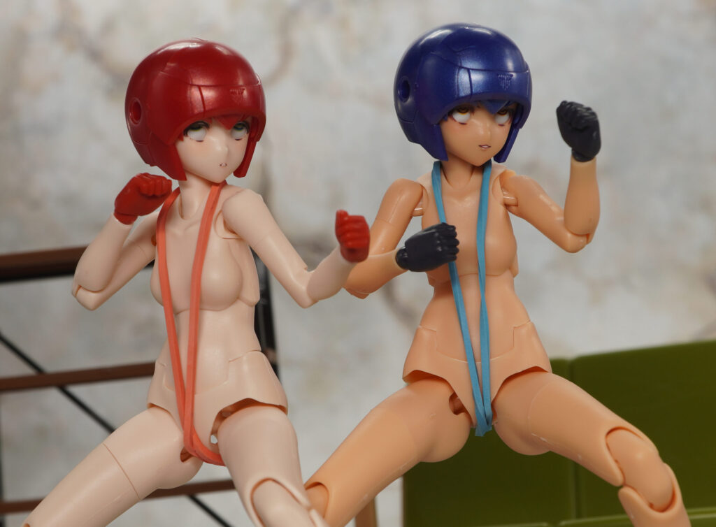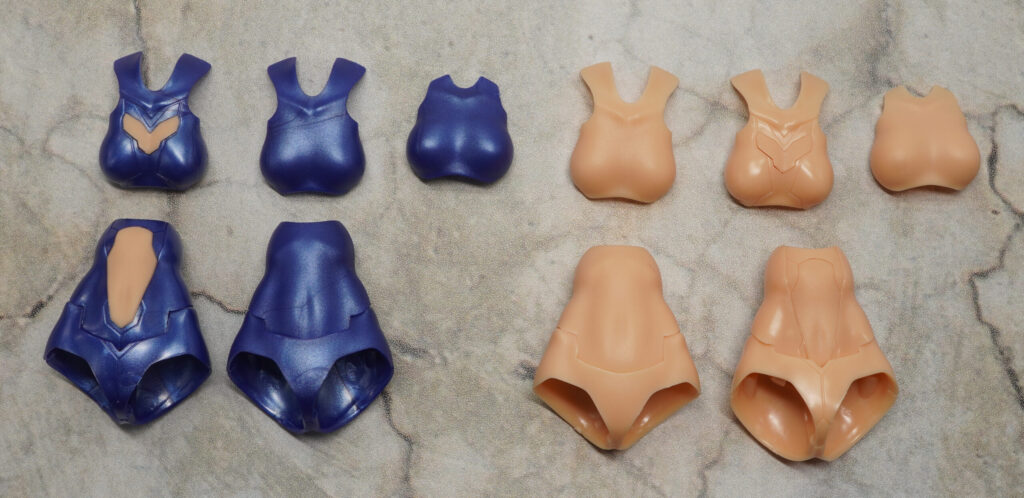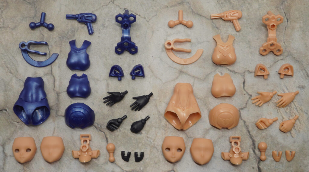 今回のシャーシキットも青+メタリックブルー+スキンカラーDで構成されたコンセプトカラー素体と、全身スキンカラー素体の2体セット。