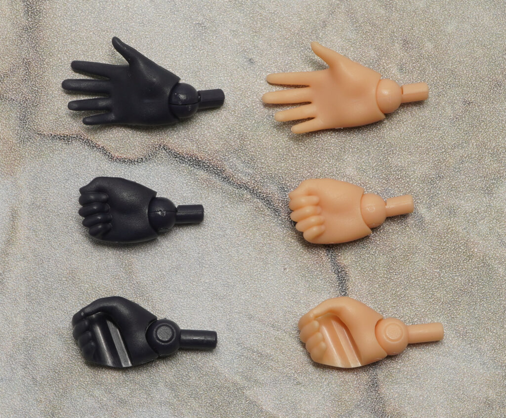 ハンドパーツは青系とスキンカラーそれぞれ3種類ずつ付属。