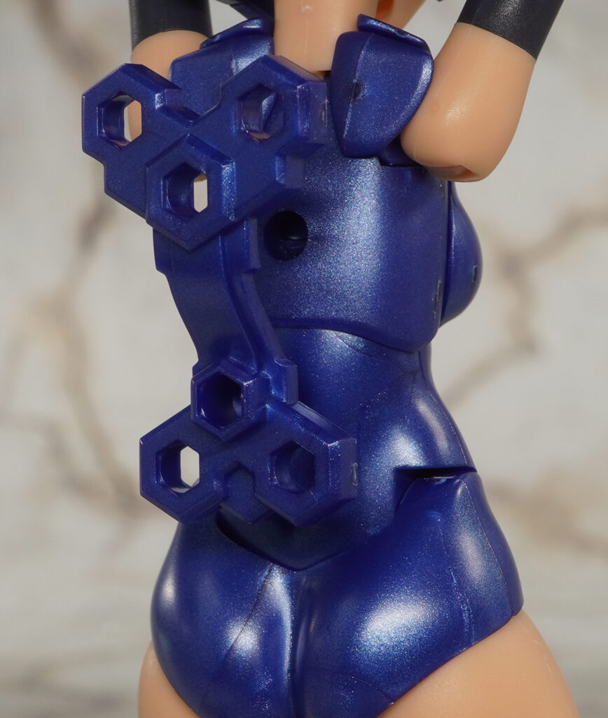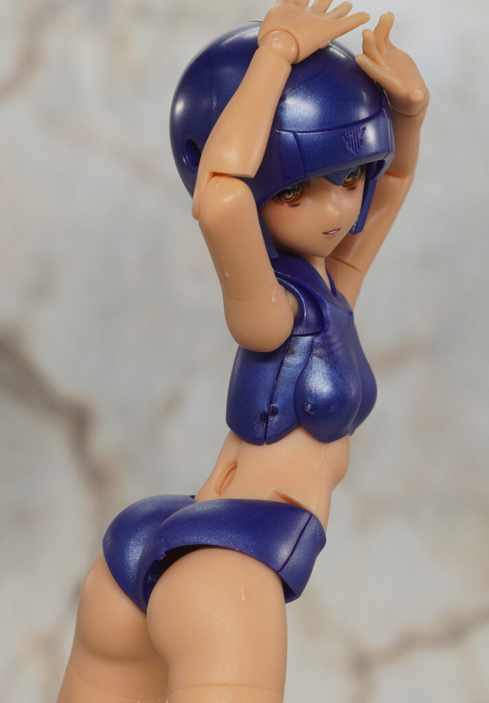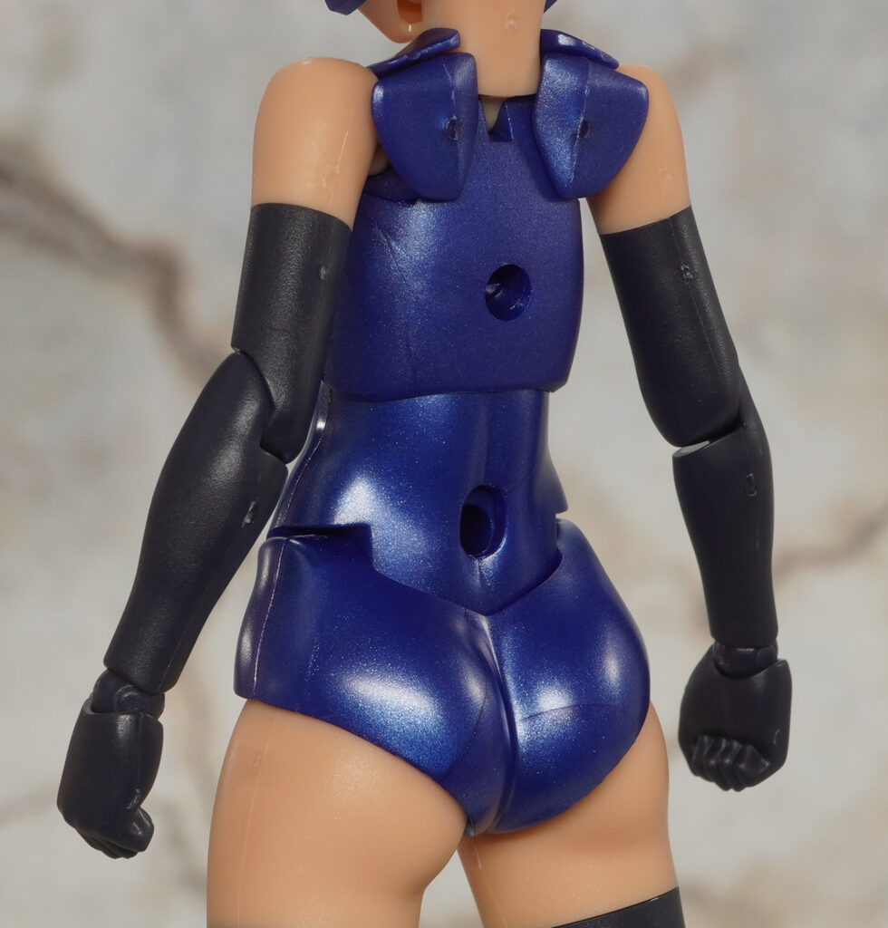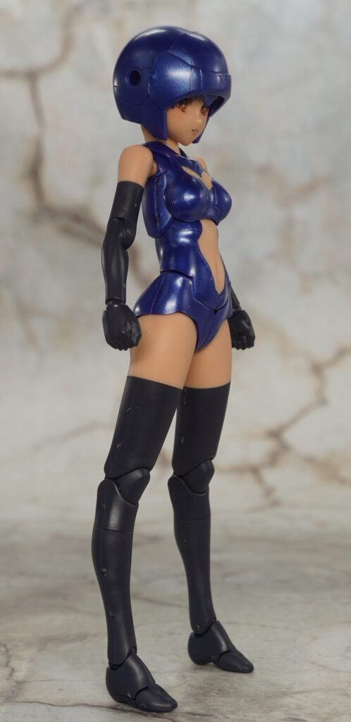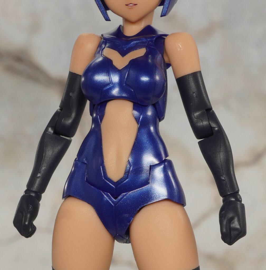ボインや腹部、パンツはメタリックブルー成形色で、手脚はツヤの抑えられたマットで暗めな色合い。