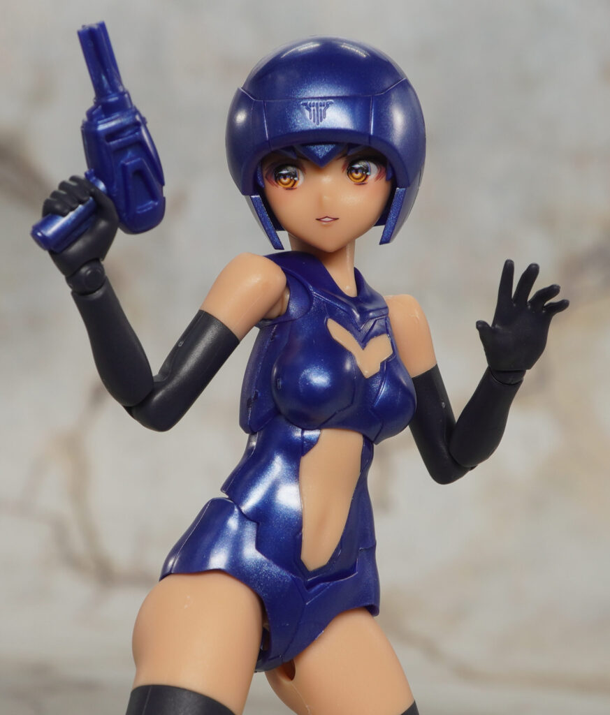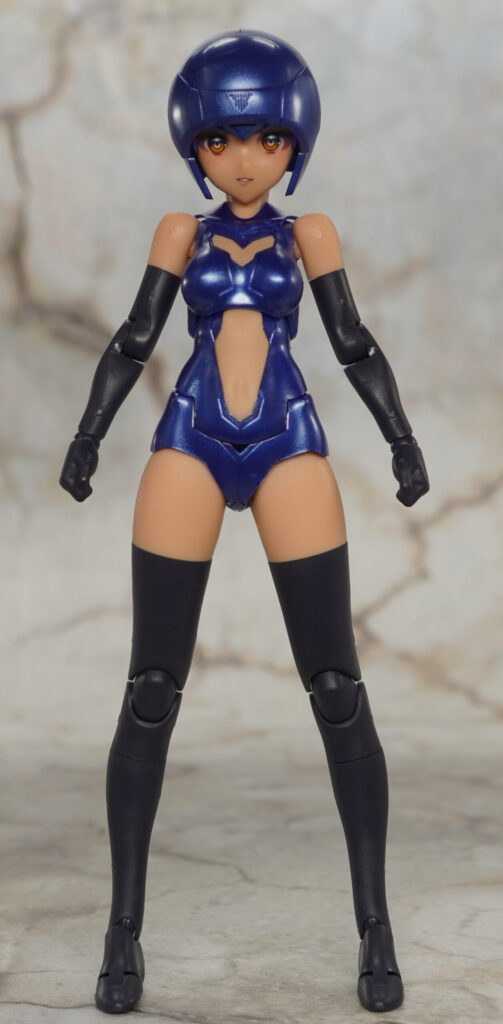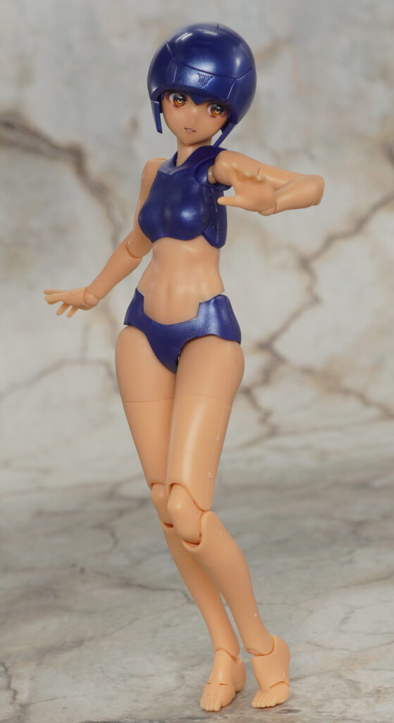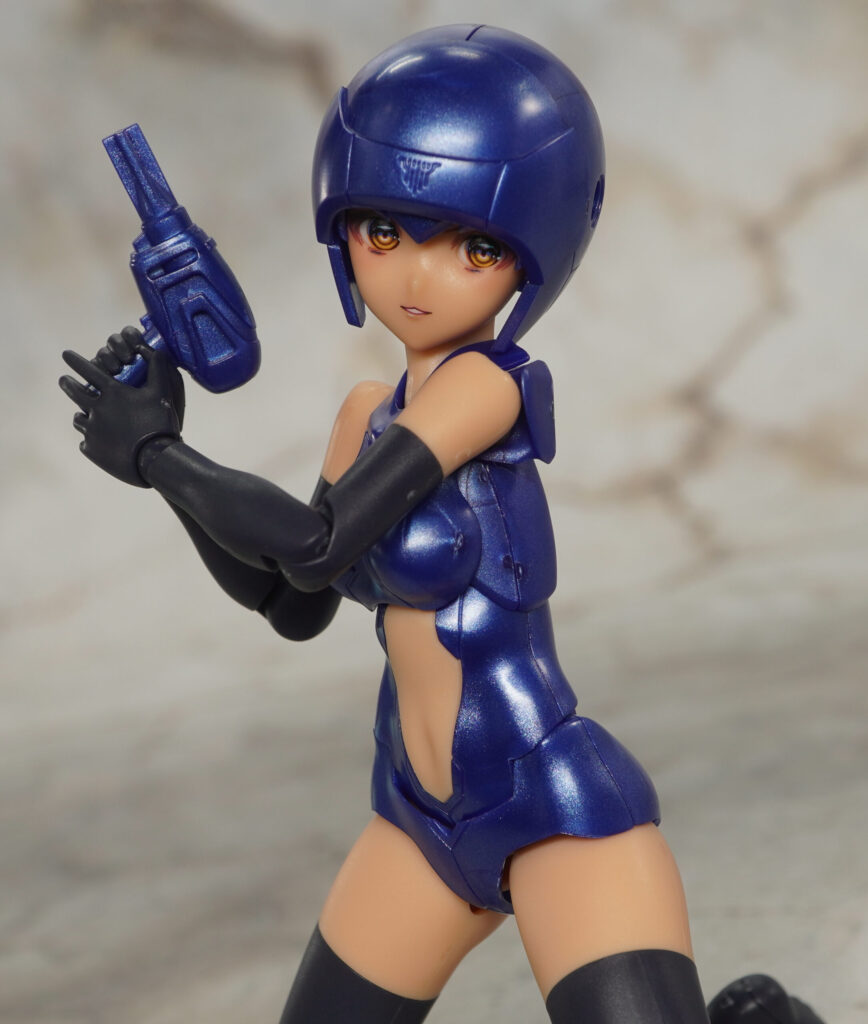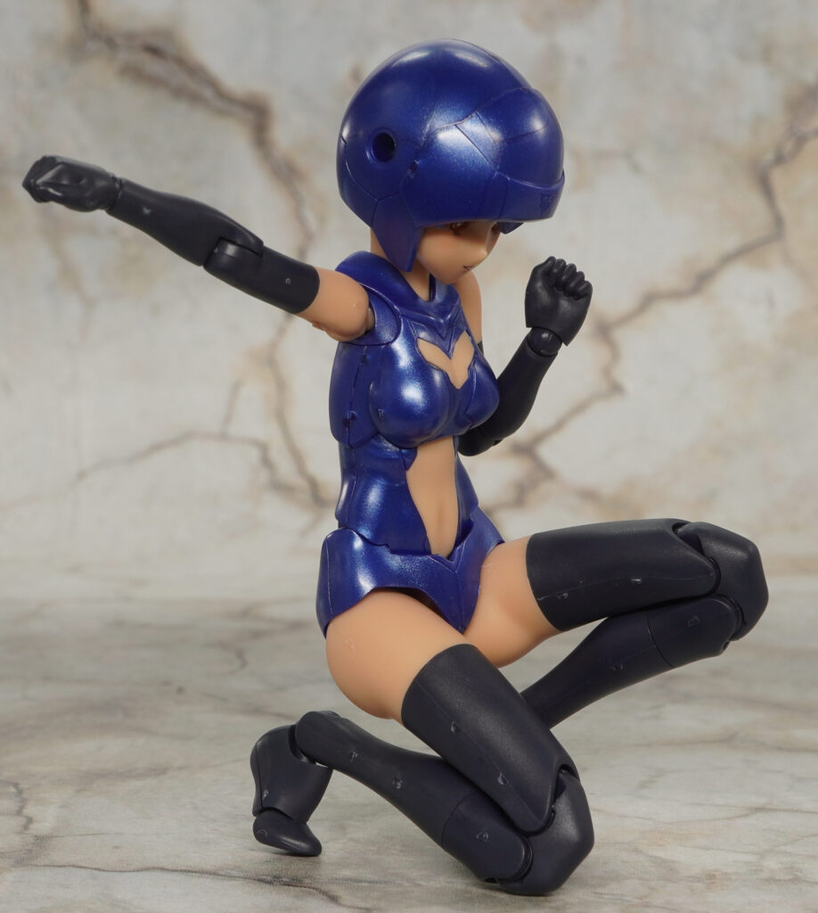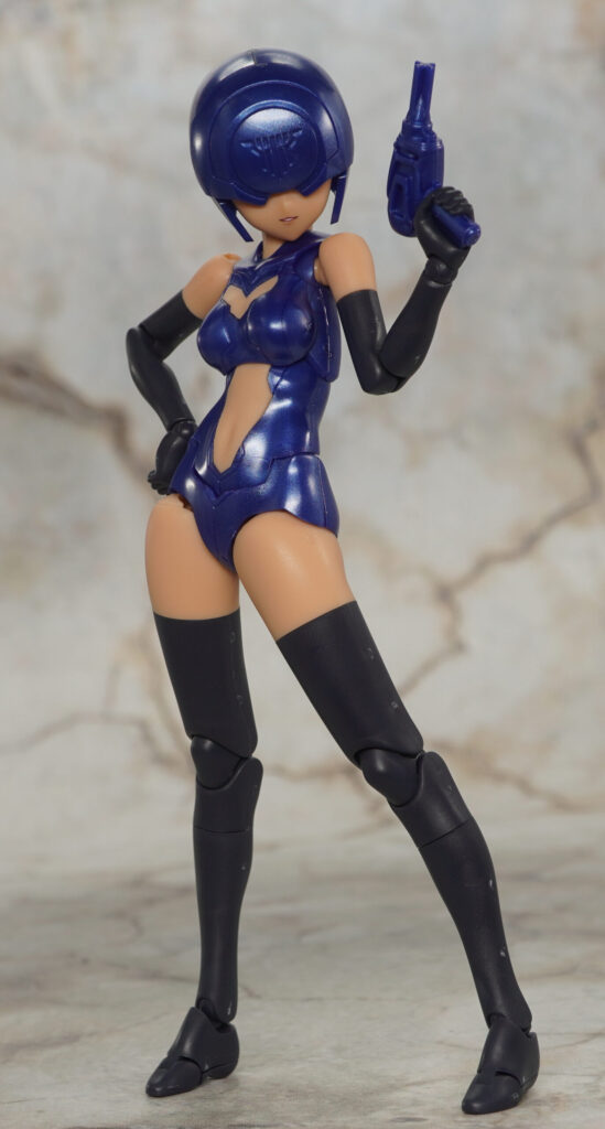 ボインや腹部、パンツはメタリックブルー成形色で、手脚はツヤの抑えられたマットで暗めな色合い。