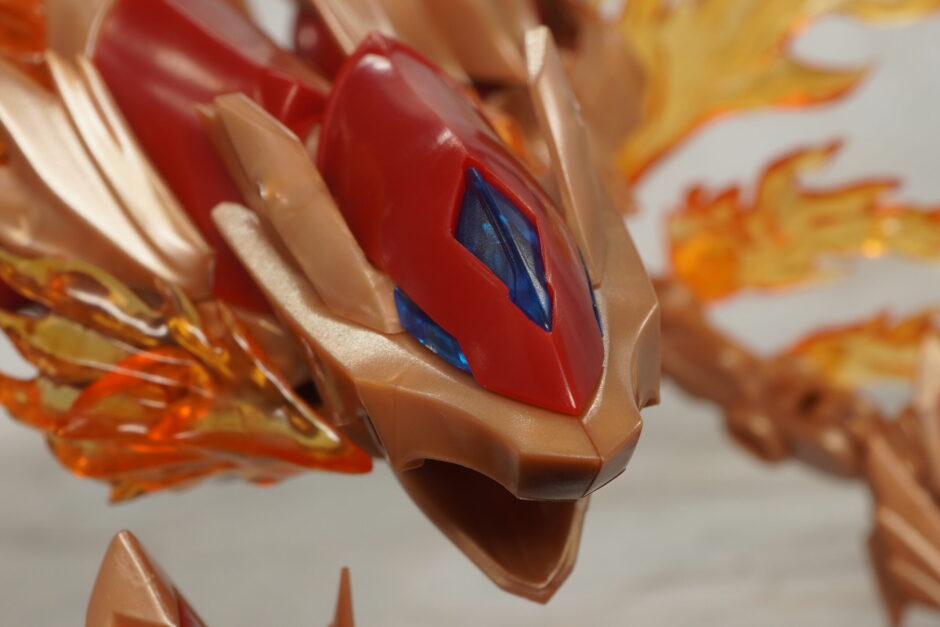 額や眼の部分はクリアブルーで造形されており、口が開閉可動。