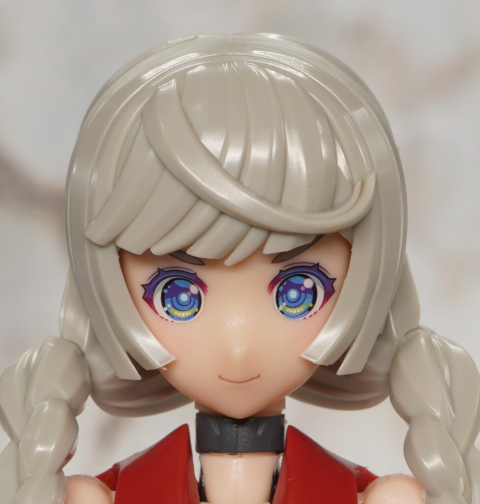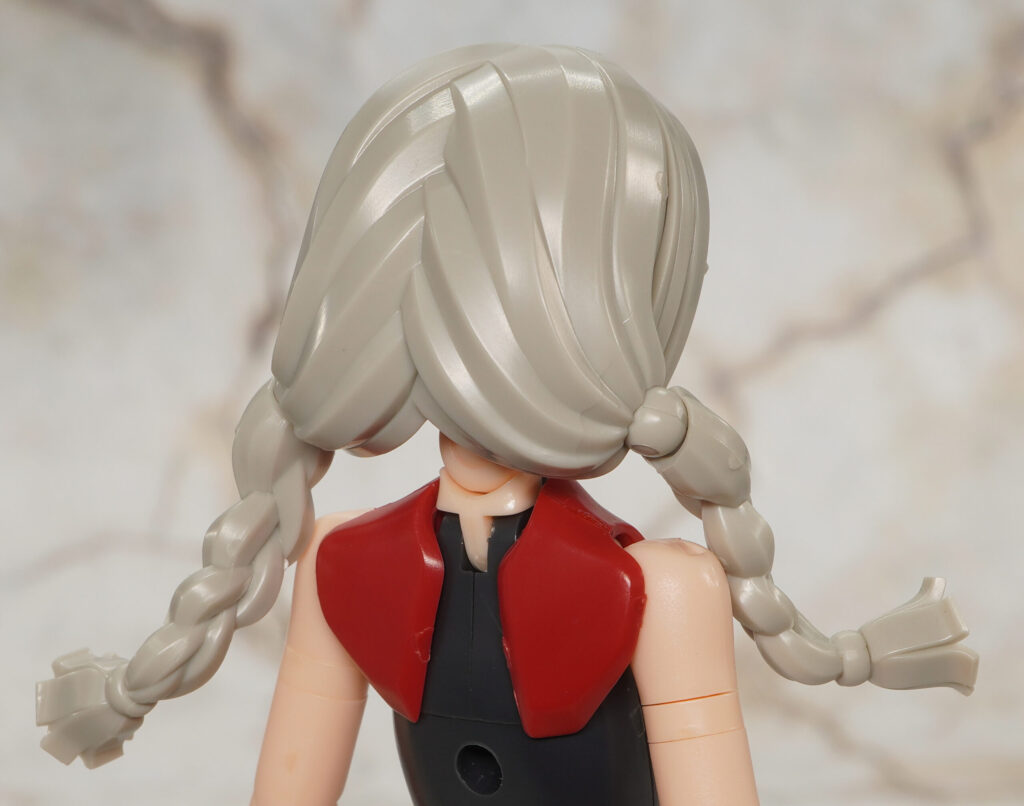 ヘアパーツは新規造形で、特徴的な三つ編みおさげは球体関節で可動。