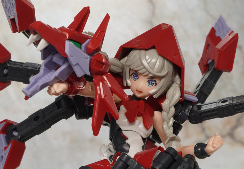 武装モードにずきんやケープ、アームクローを取り付けてメカニカルな赤ずきんモードを再現。