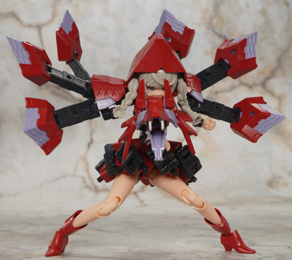 ここからさらにアーマーを装着して赤ずきんモードなどを再現するようになっており、他のメガミの武装モードと比べてだいぶとシンプル。