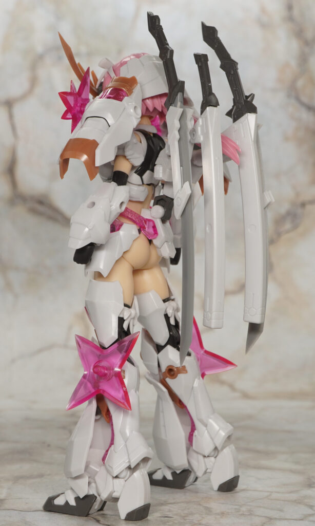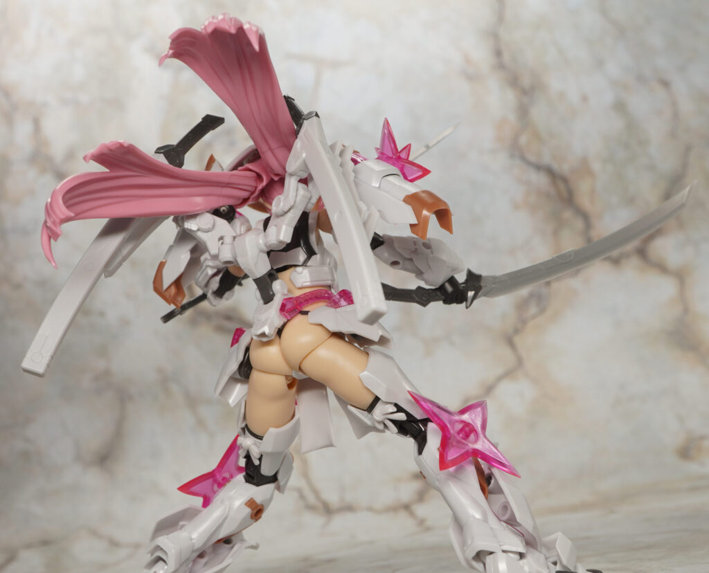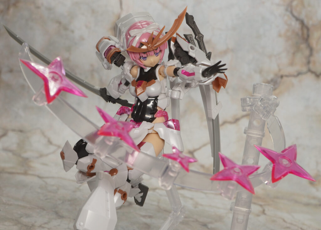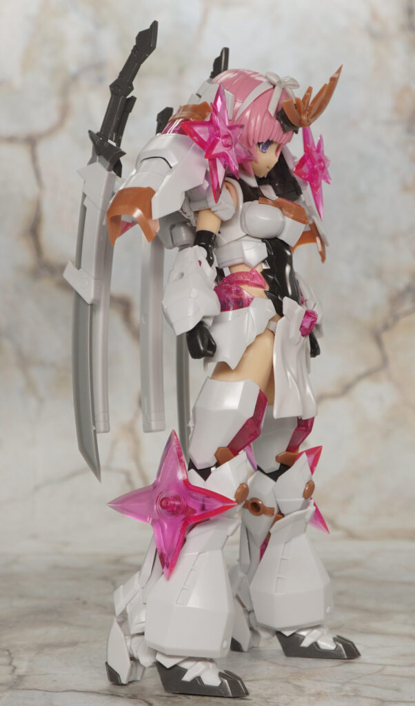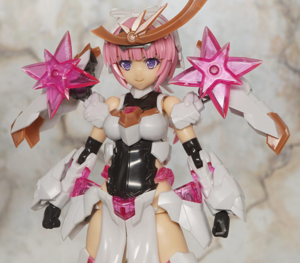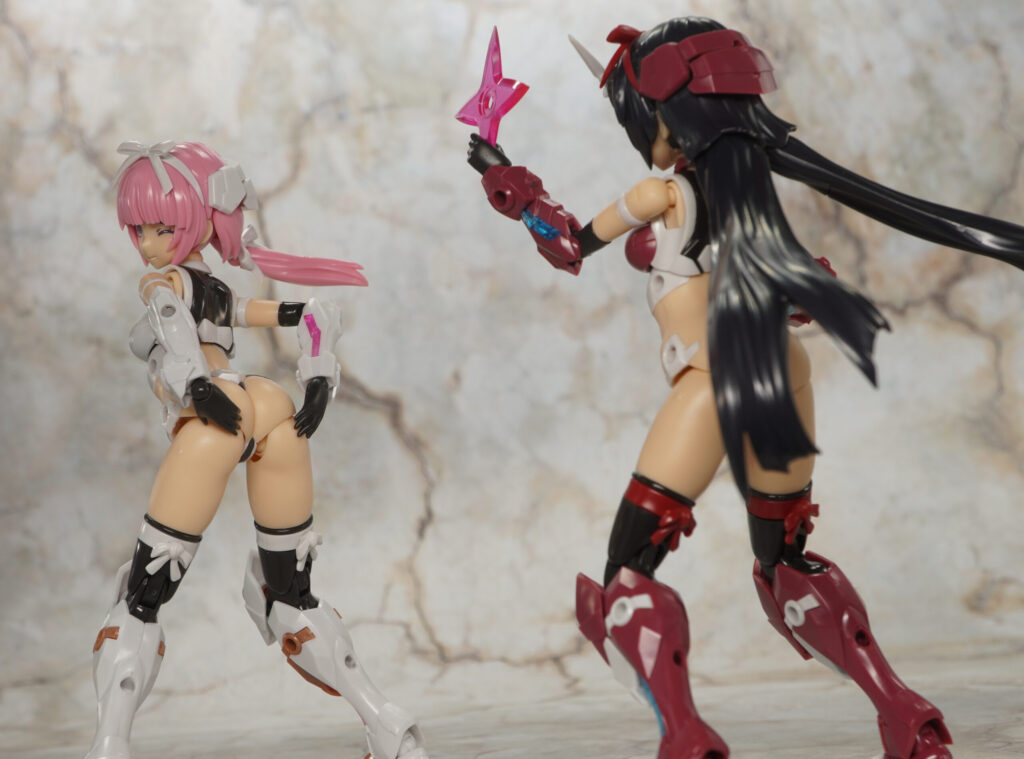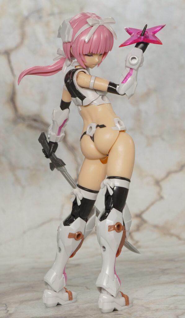 大部分は元のマガツキと共通で尻を出していますが、髪型が一つ結びになり、クリアピンク成形色の手裏剣が追加されてます。