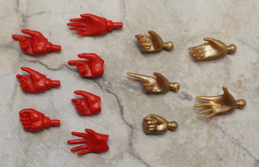 ハンドパーツは赤い素体モード用が7種類と、金色の武装モード用が5種類付属。