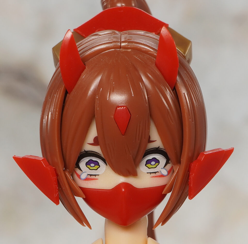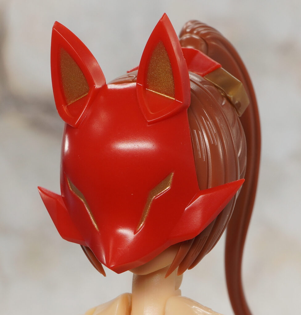 塗装済パーツのフェイスガード(狐面)も付属しているぞ!