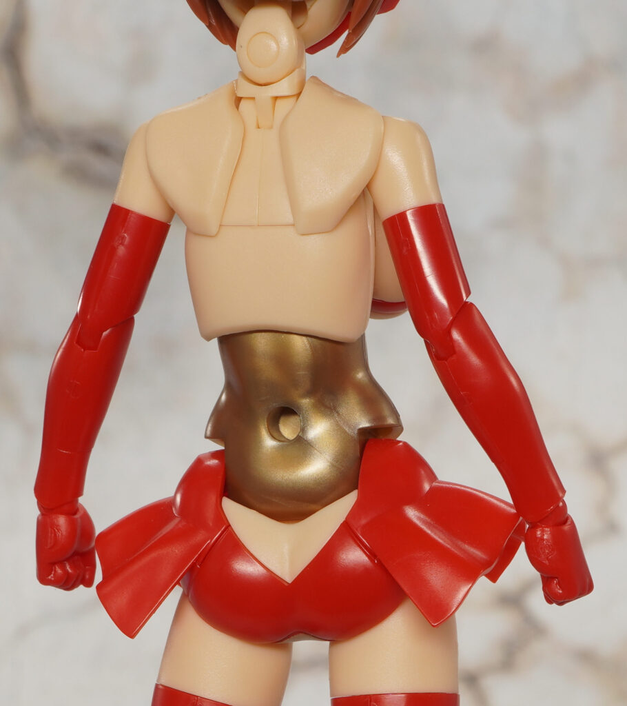 ヒラヒラパンツの股の部分は塗装済パーツで色分けされており、脚部はスネに分割軸が無いタイプ。
