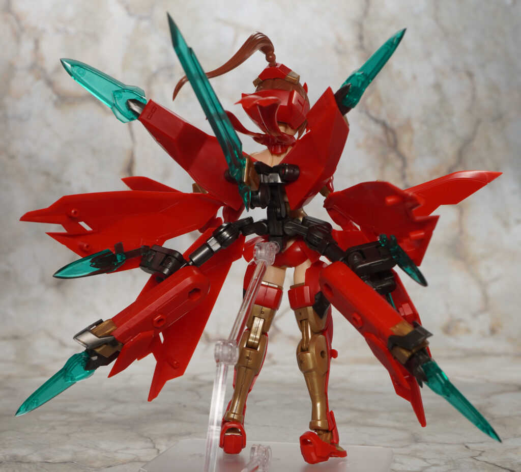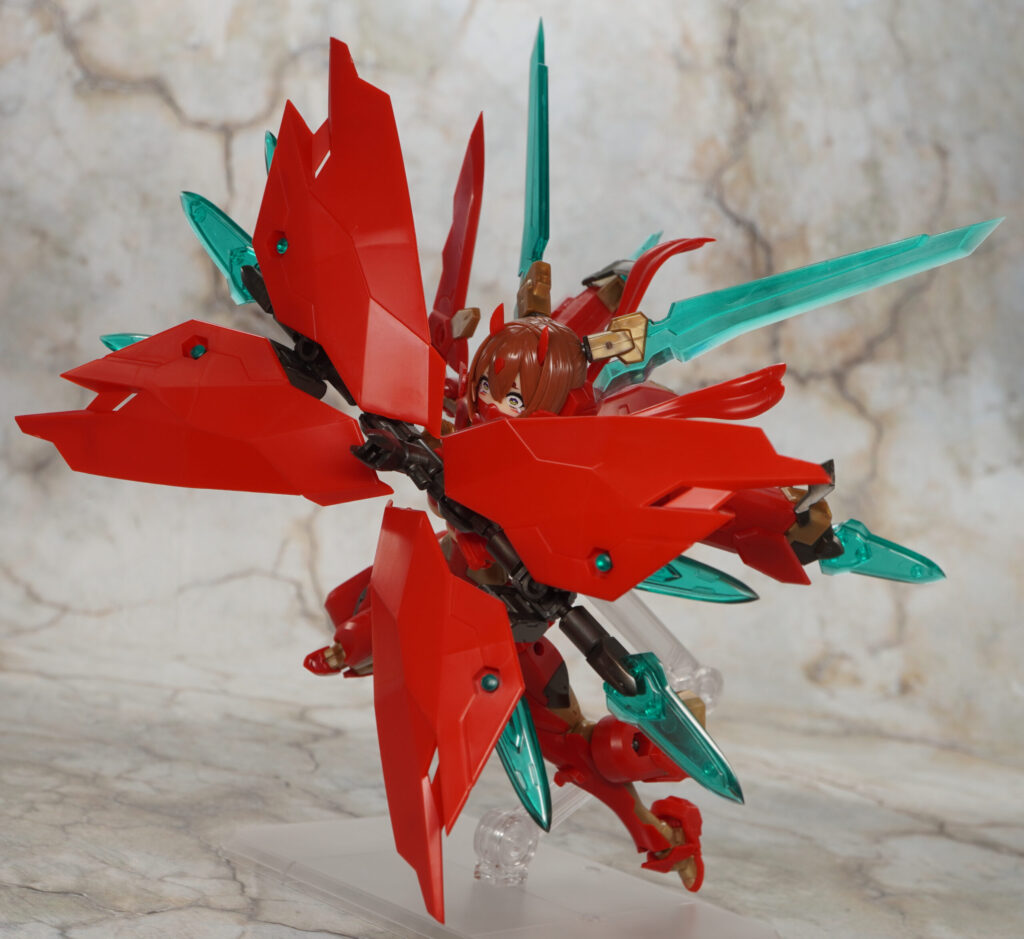 カウルやスラスター、装甲などは赤いラピッドレイダーの物が使われており、FAガールのフレズヴェルク&ラピッドレイダーセットのと同じ成形色っぽいです。