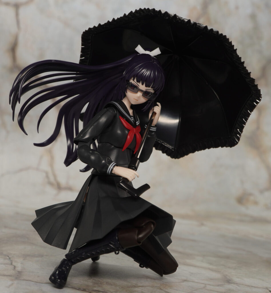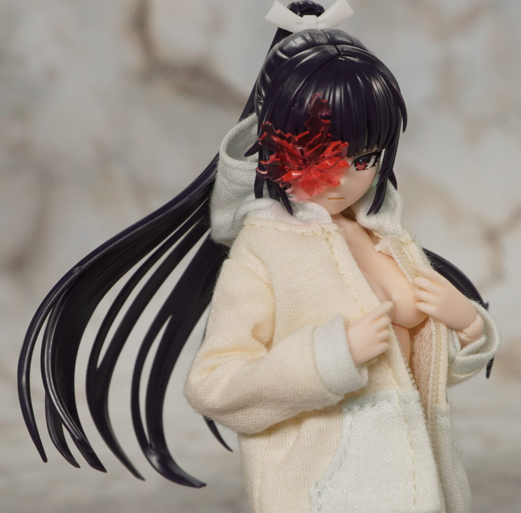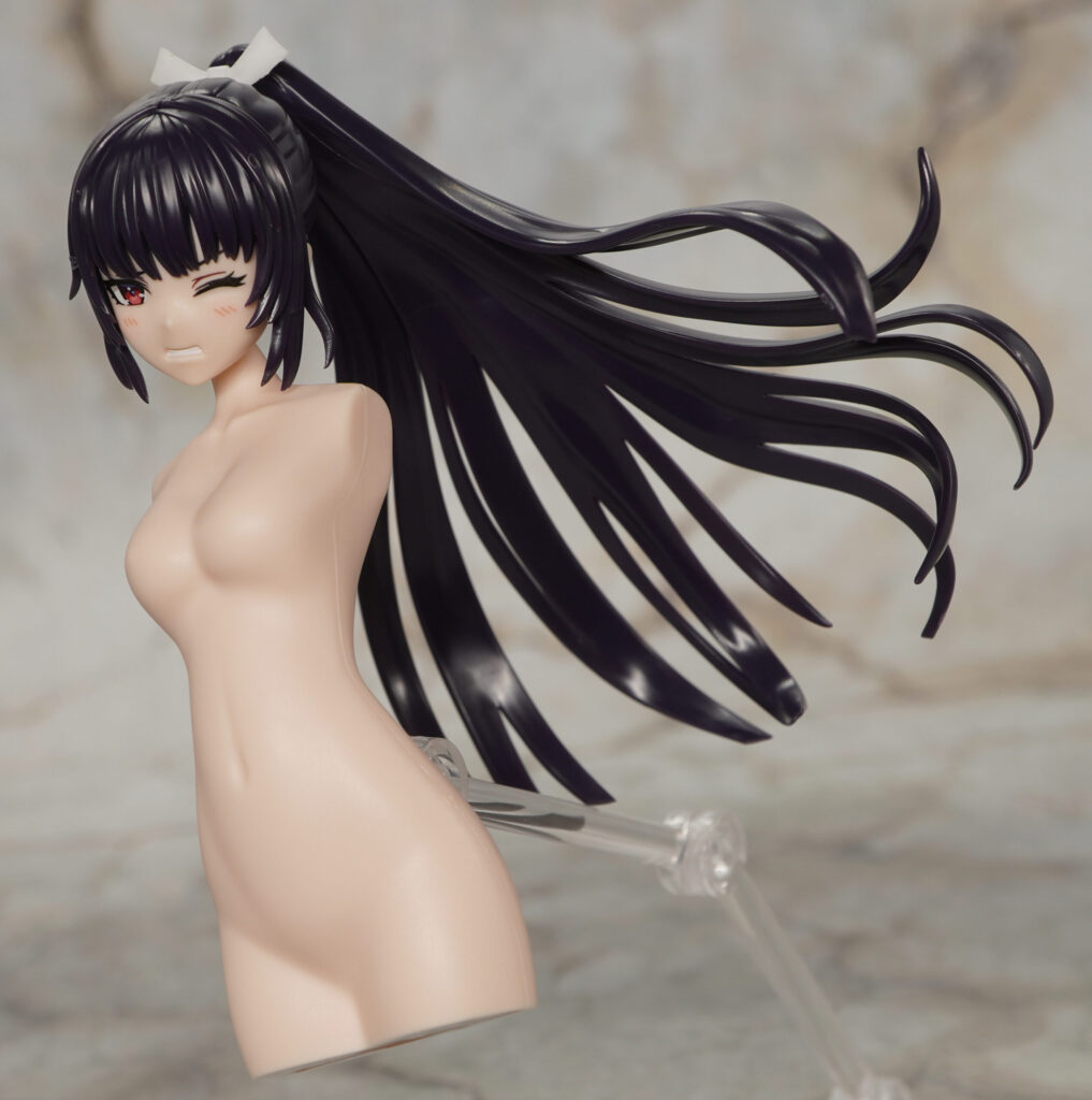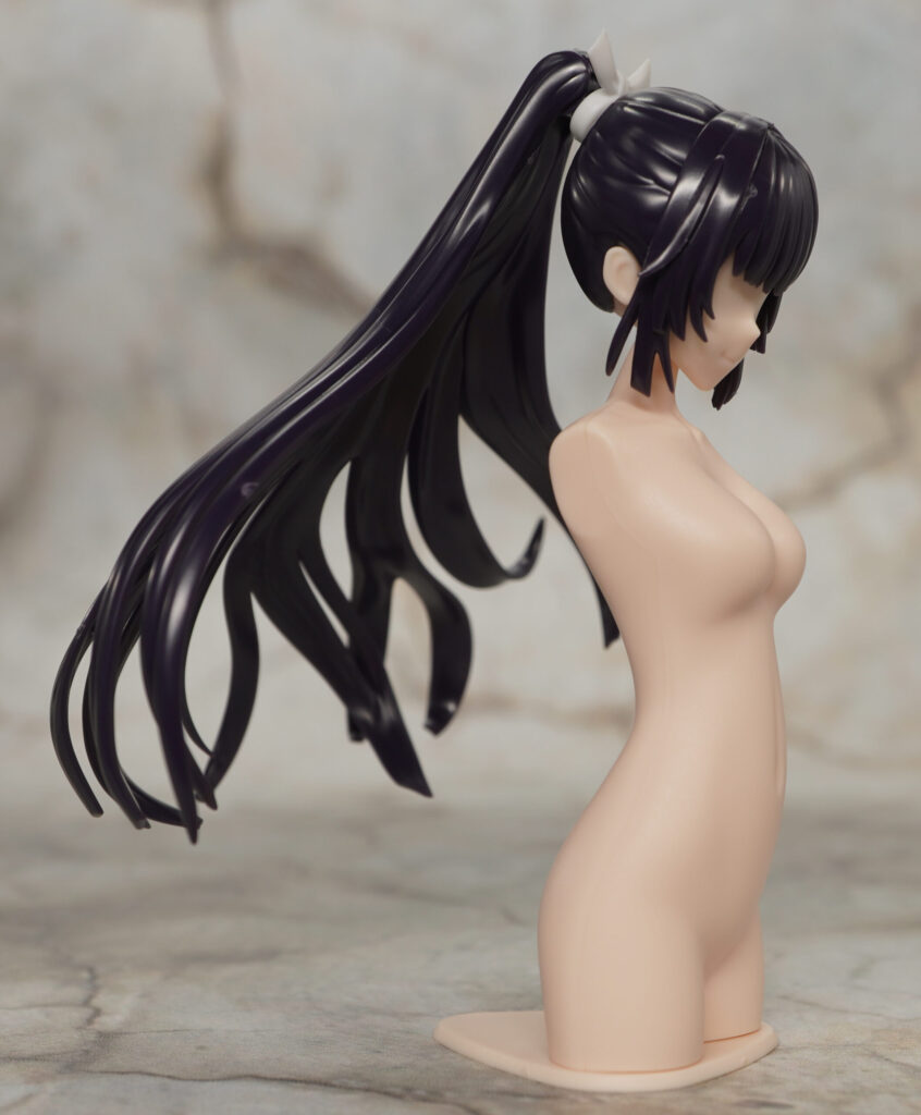 同時発売の薬師寺 久遠(篝火 真里亞・衣装)向けなウイッグで、あちらと同じ紫がかった黒成形色で造形されています。
