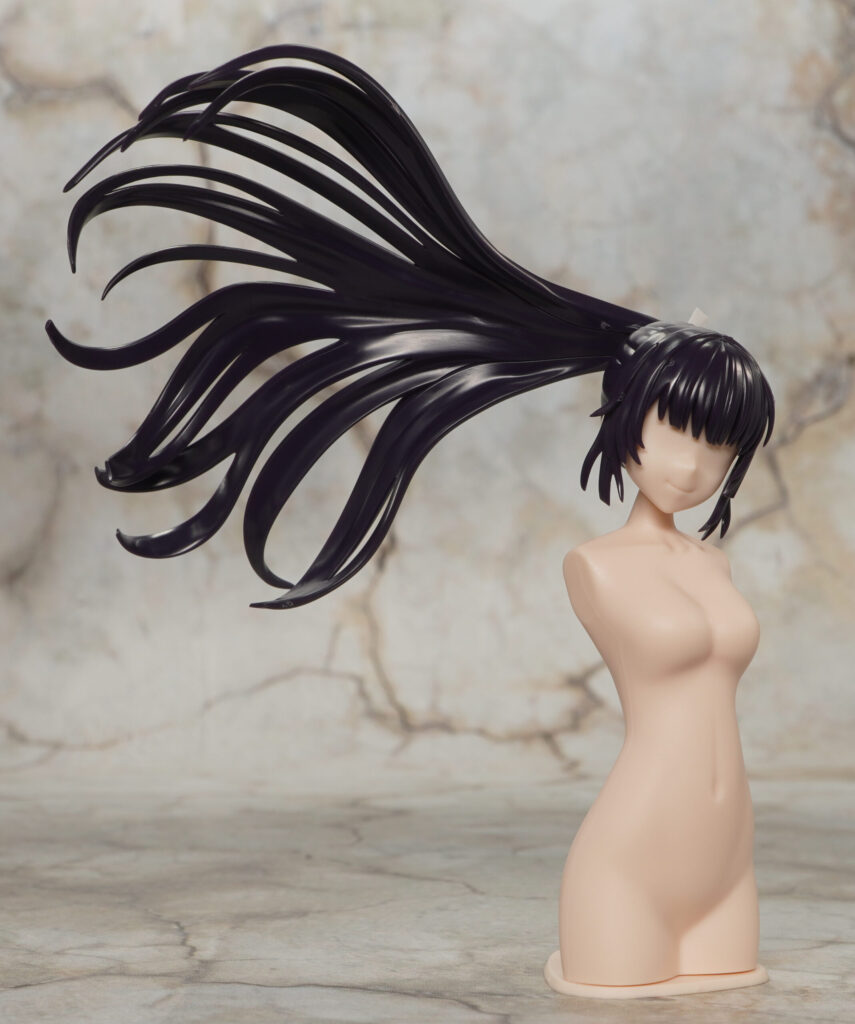 ロングヘア向けにトルソーも新造されており、背中とギターピック型の台座を外した下部には3mm軸穴が造形。