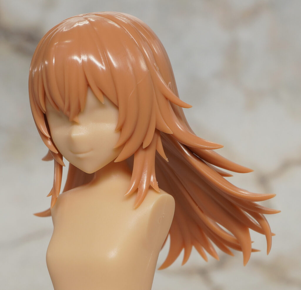 頭部は”アレンジウィッグ ウルフレイヤーカット”を星羅のオレンジ茶髪にした物で、前髪のメッシュはありません。
