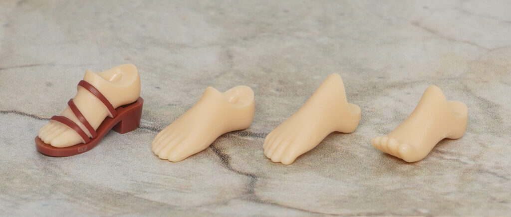 サンダルの足の甲も塗装済パーツで、素足の足首も3種類付属してます。