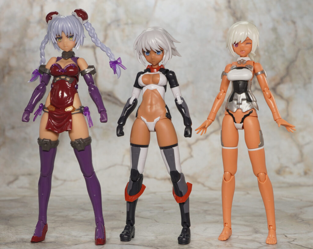 褐色な肌色はメガミデバイスのスキンカラーDやレティシア Silver Ver.などとは違った色合い。