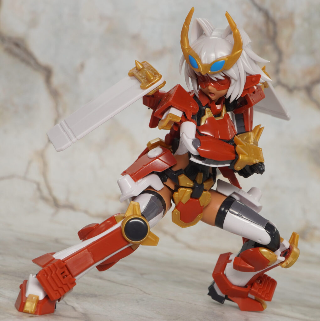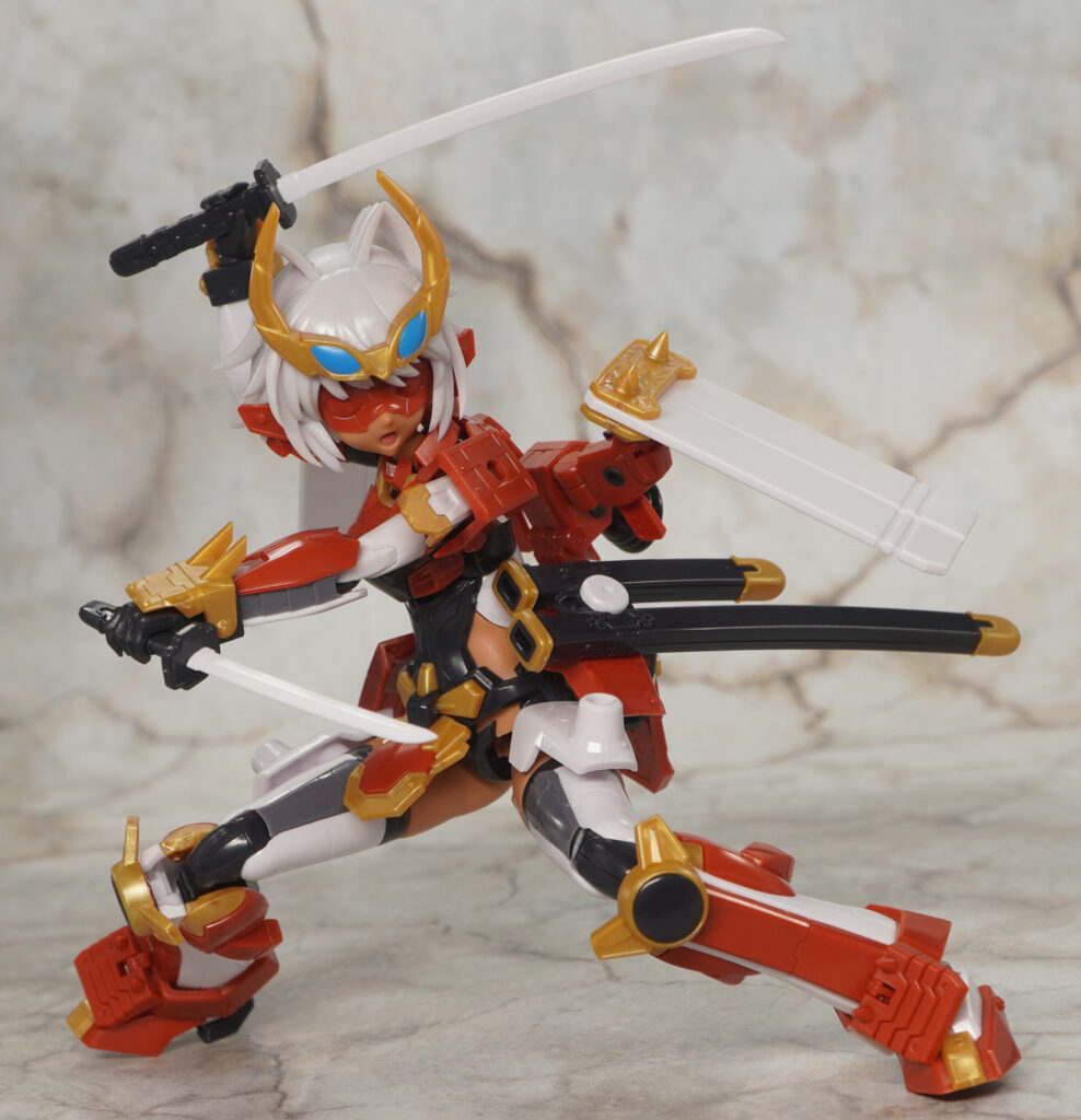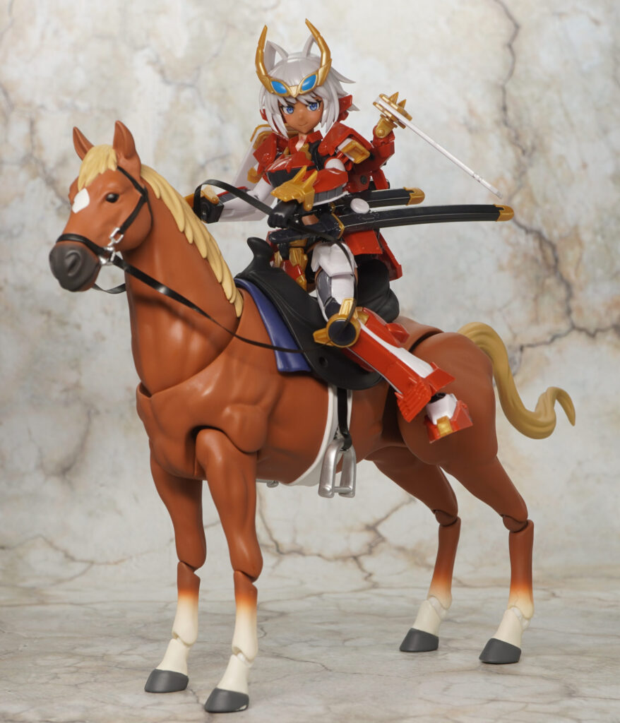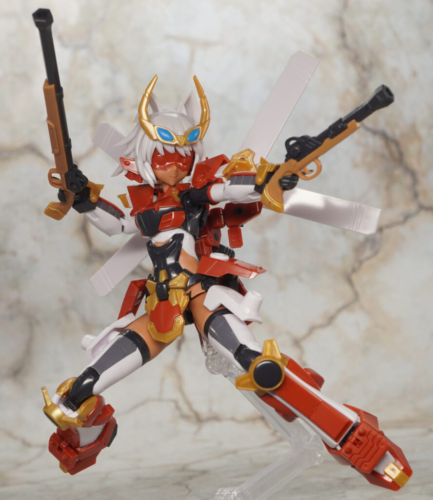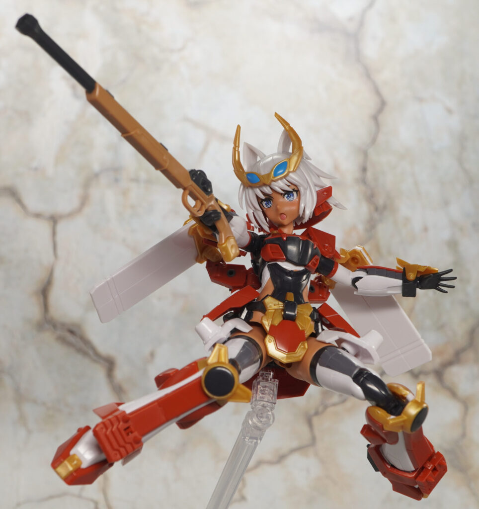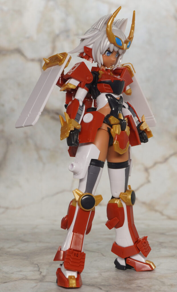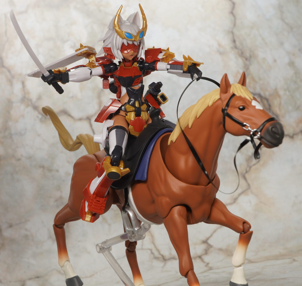 こちらが完成した【フレームアームズ・ガール】信玄(しんげん)の素体モードです。信玄いうことで日本刀や銃、兜、旗印など戦国大名をイメージした武器やアーマーを備えたFAガール。