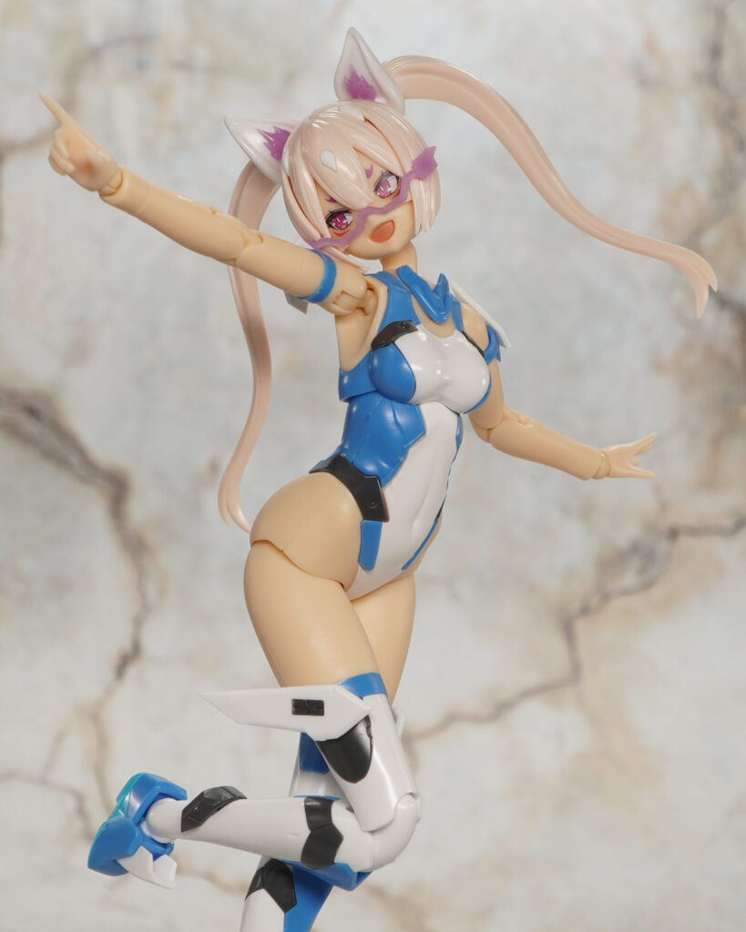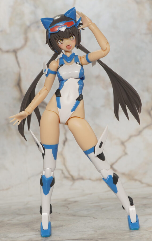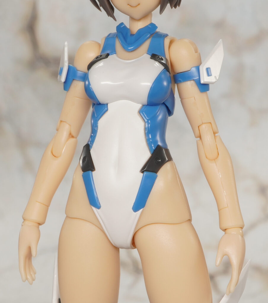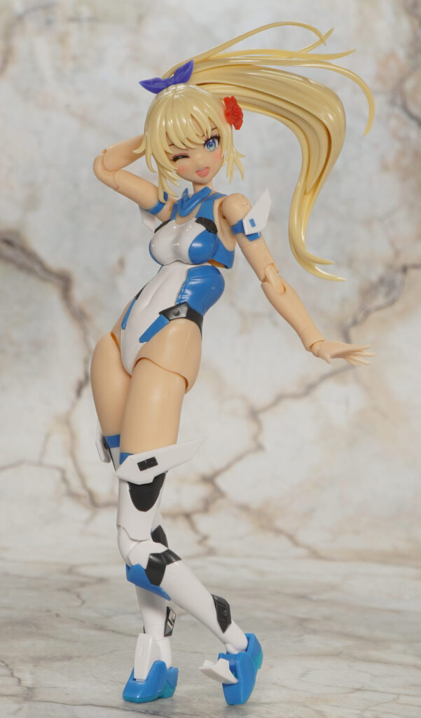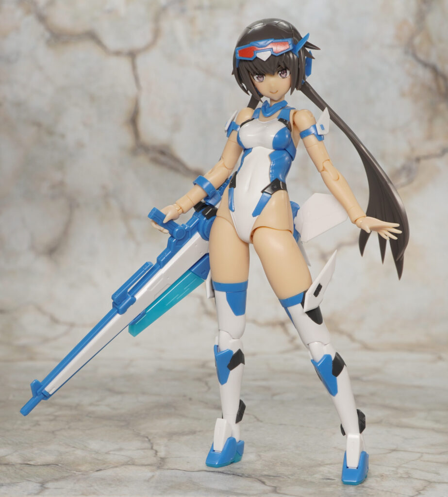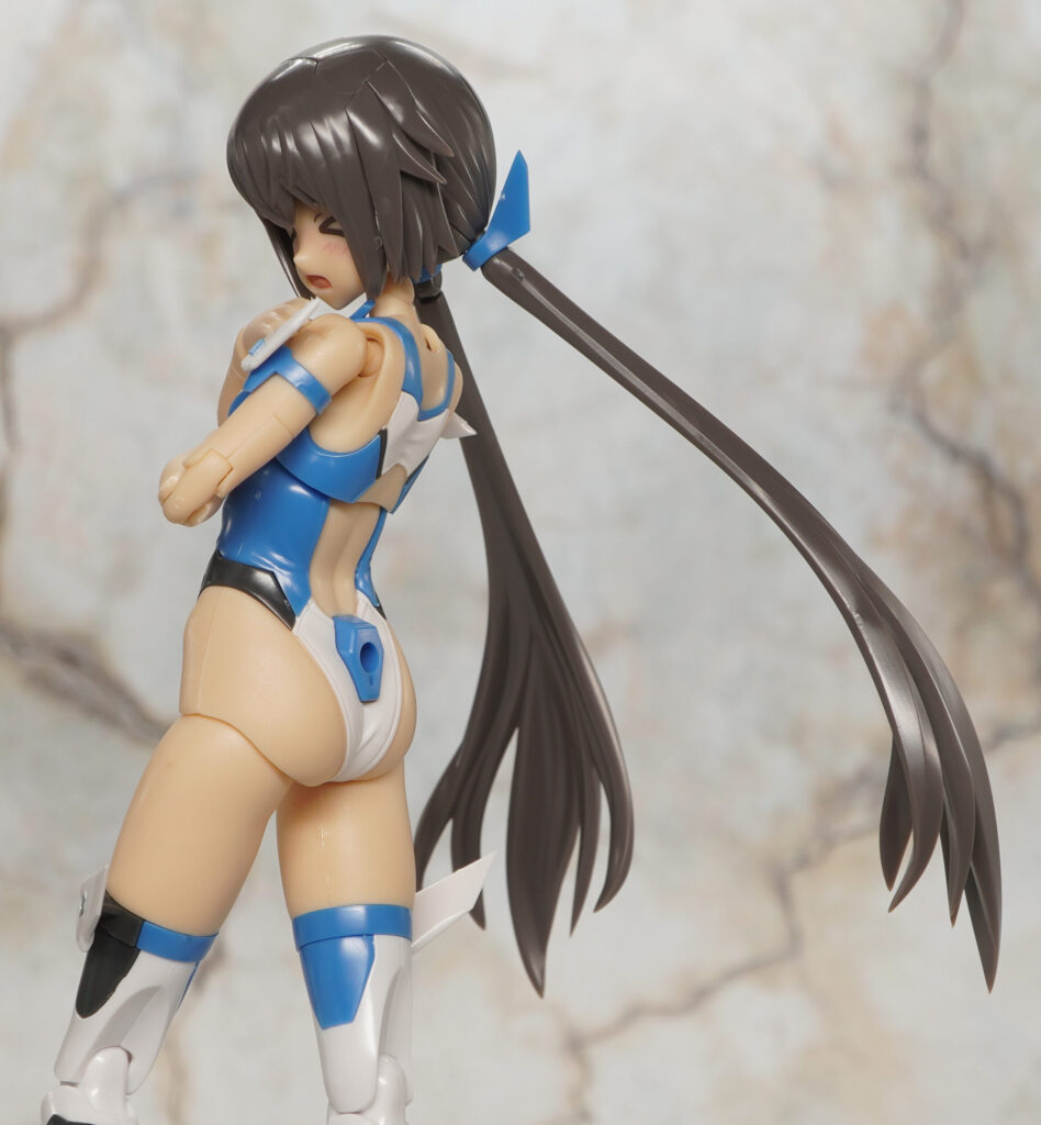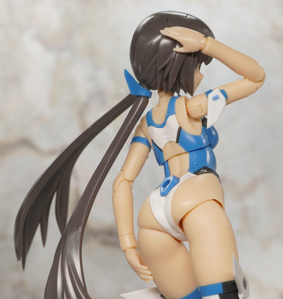 スキンカラーAの創彩少女庭園やアルカナディアとも頭部交換でき、首関節を交換してメガミデバイスも青白鮮やかな際どいハイグレ姿にすることができるぞ!