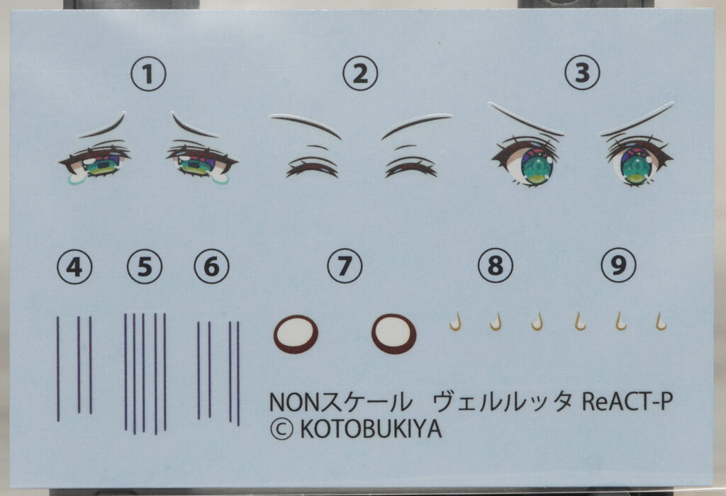 パッケージと水転写デカール。表情や冷や汗を再現できるデカールが付属。