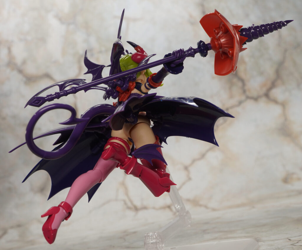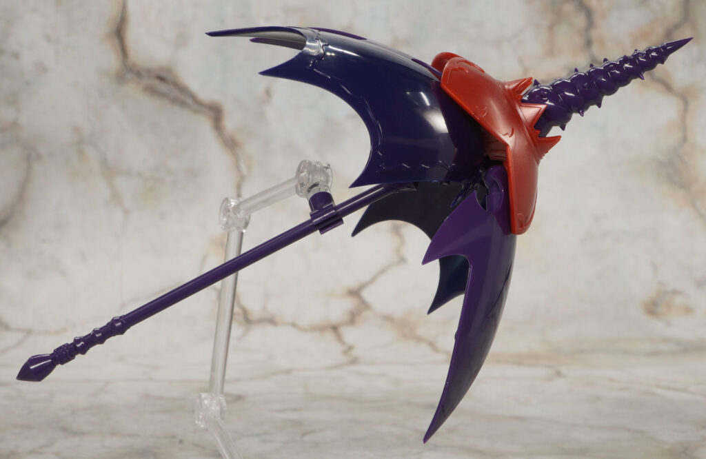 こちらが完成した【アルカナディア】ヴェルルッタ ReACT-Pです。「アルカナディア」シリーズ第2弾として登場した七魔槍の一人、水属性・悪魔型ディアーズのヴェルルッタが闇属性になり全盛期の志茂田景樹みたいなカラーリングになった姿。