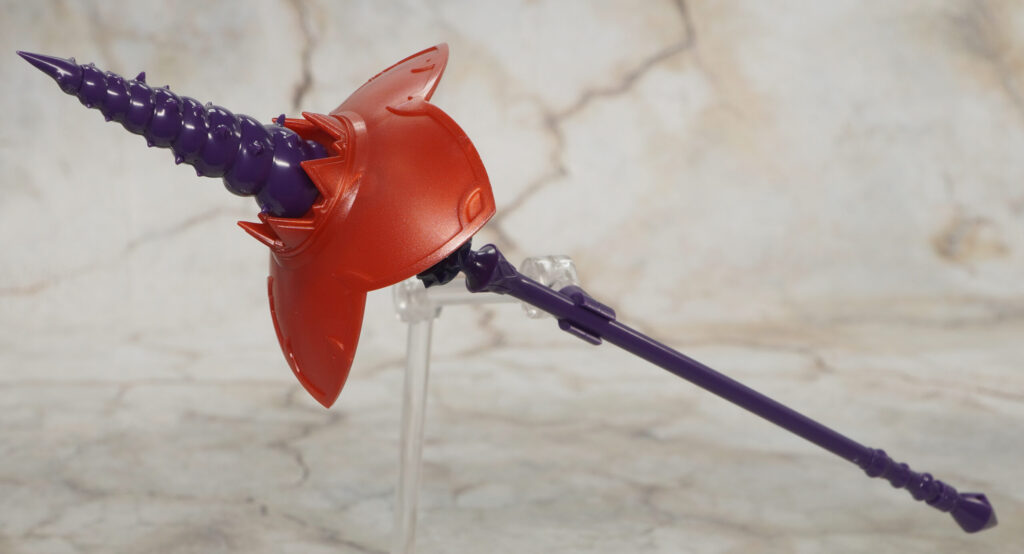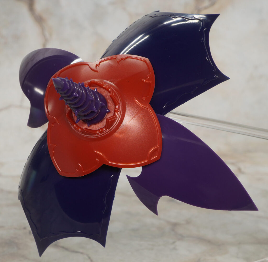 槍(パラソル)とメタリック成型色の展示ベースも付属し、槍はジョイントを使ってディスプレイ可能。