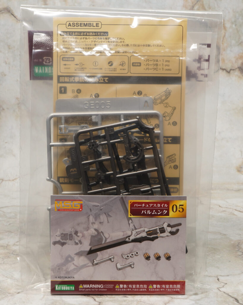 コトブキヤの「M.S.G モデリングサポートグッズ」より、スタイリッシュな銃剣を組み替えて両刃ブレードと回転式拳銃に分離できる「バーチュアスタイル05 バルムンク」が登場しましたのでレビューしたいと思います!