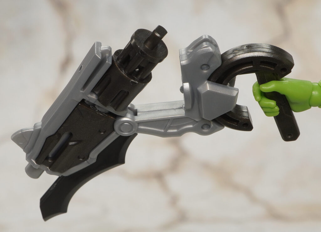 拳銃と両刃ブレードをそれぞれマウントできるホルスターとジョイントが付属しており、3mm軸で美プラなどに接続できます。