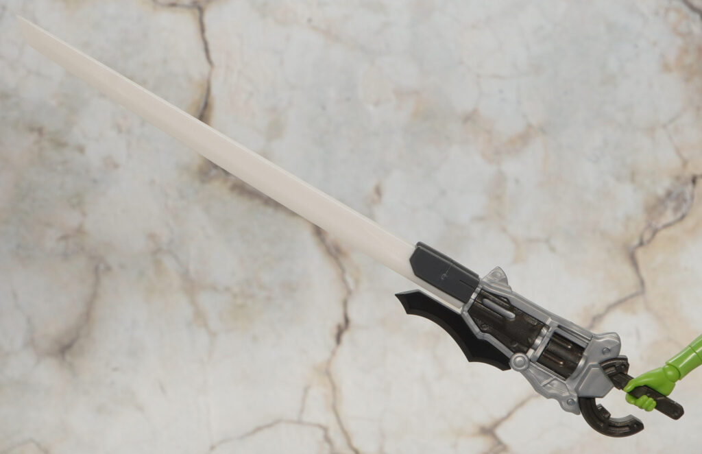 ブレードは艶有りブラック、本体はシルバー、グリップなどはガンメタルな成形色で造形されてます。