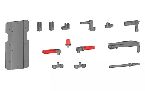 キットの内容はバリスティックシールド、ハンドガン、ソードオフショットガン、警棒、パトランプ一式、ジョイント一式です。