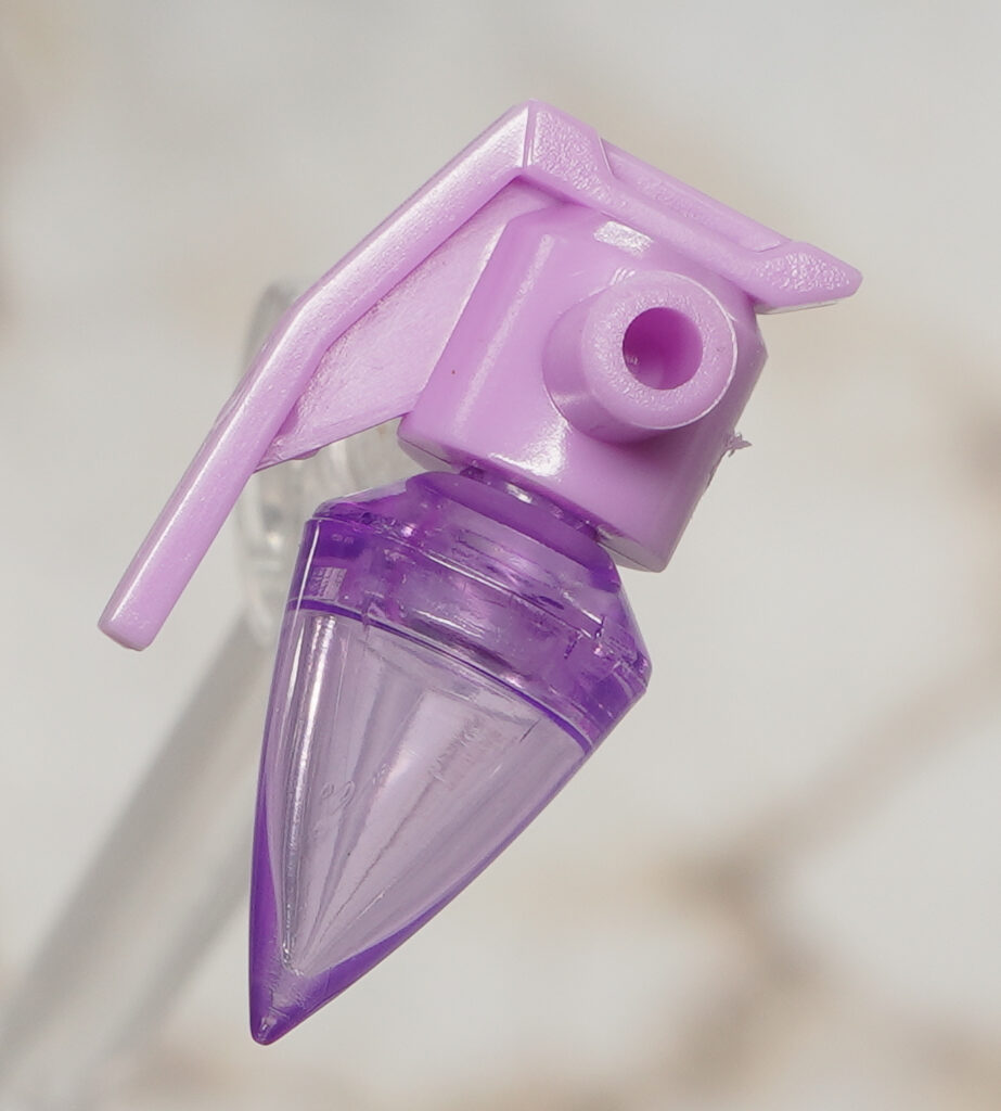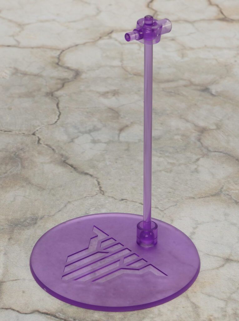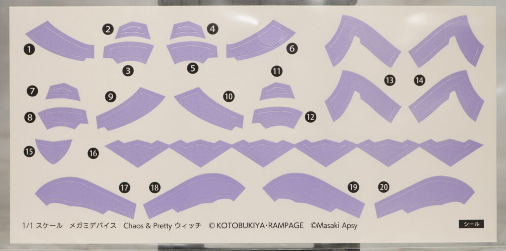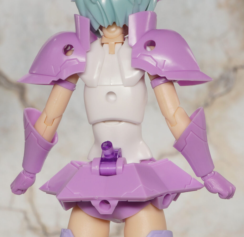 アーマー類は濃い紫成形色で造形されており、ライトパープルの部分はシールで色分け。