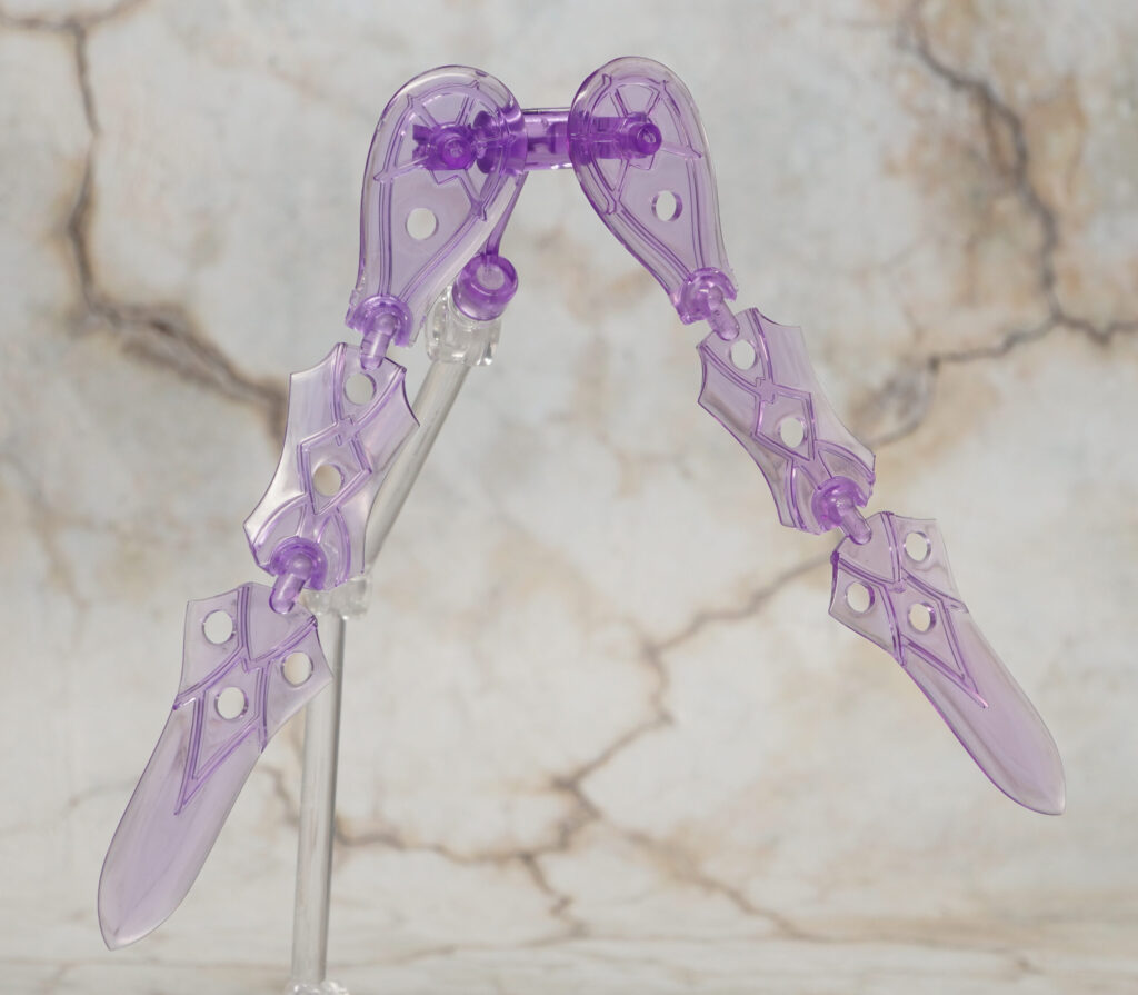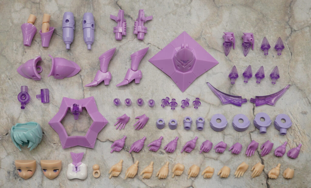 ハンドパーツはフレッシュ(素体モード)とパープル(武装モード)がそれぞれ7種類ずつ付属。