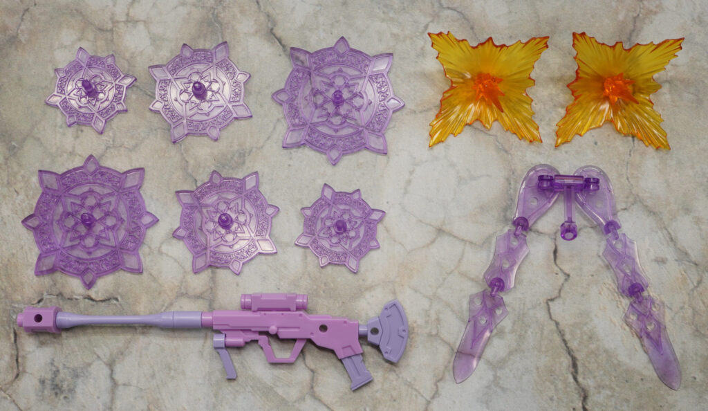 魔法陣やマズルフラッシュエフェクトなどの使い勝手の良いクリアパーツもたくさん付属しているぞ!