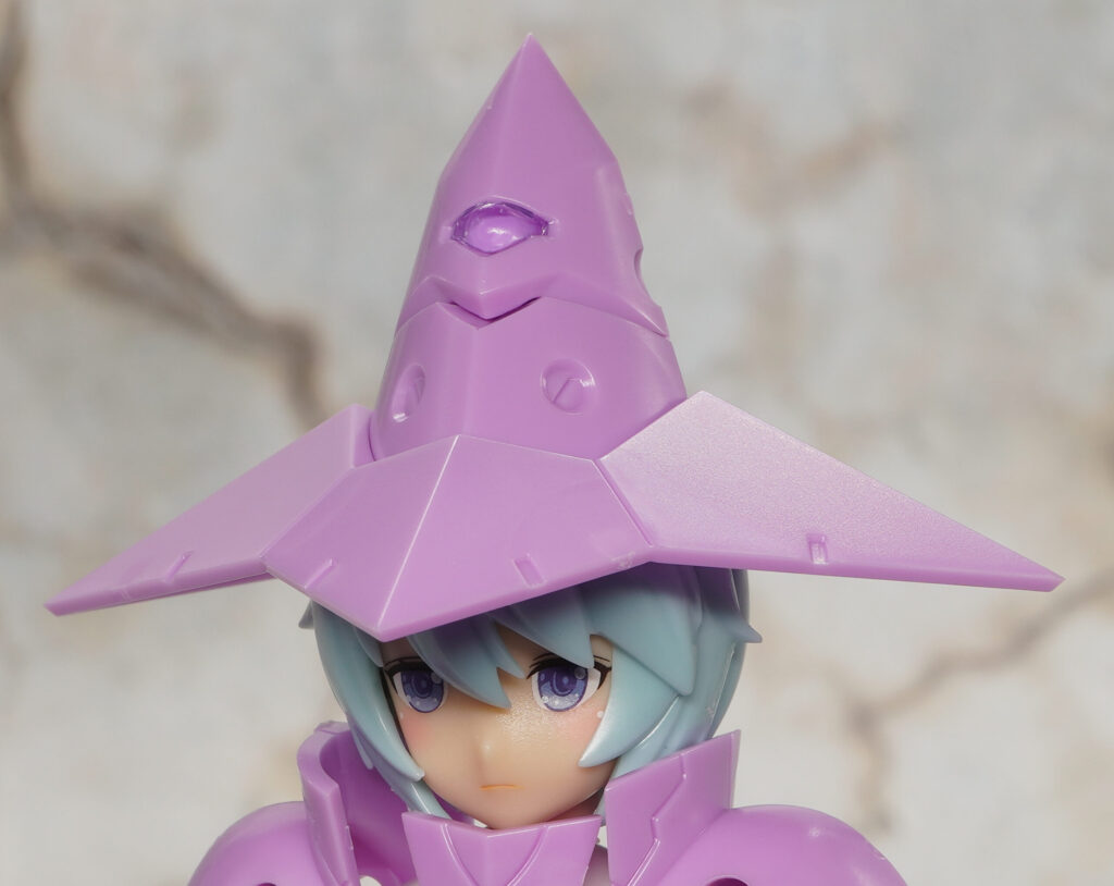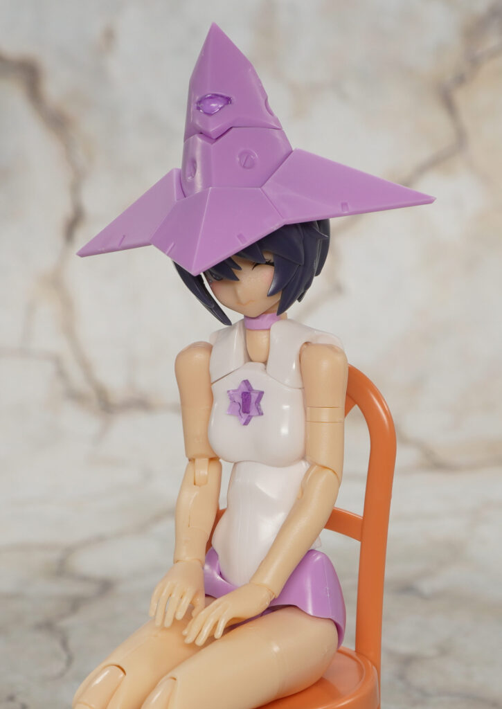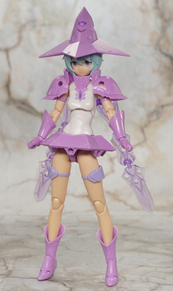 こちらが完成した【メガミデバイス】Chaos & Pretty ウィッチの素体モードです。カオプリシリーズ第2弾となる魔女がモチーフのメガミで、第1弾のマジカルガールと同じく手足は肌色カラーで造形。
