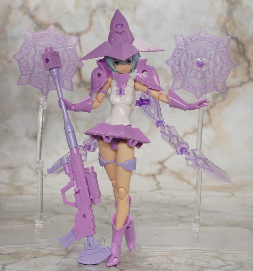 武器は新規のライフルやハンドガンの他にマジカルガールにもあった釘バットやスパイクパーツなどが付属しており、自由に組み替えて様々な武装を再現することが可能。
